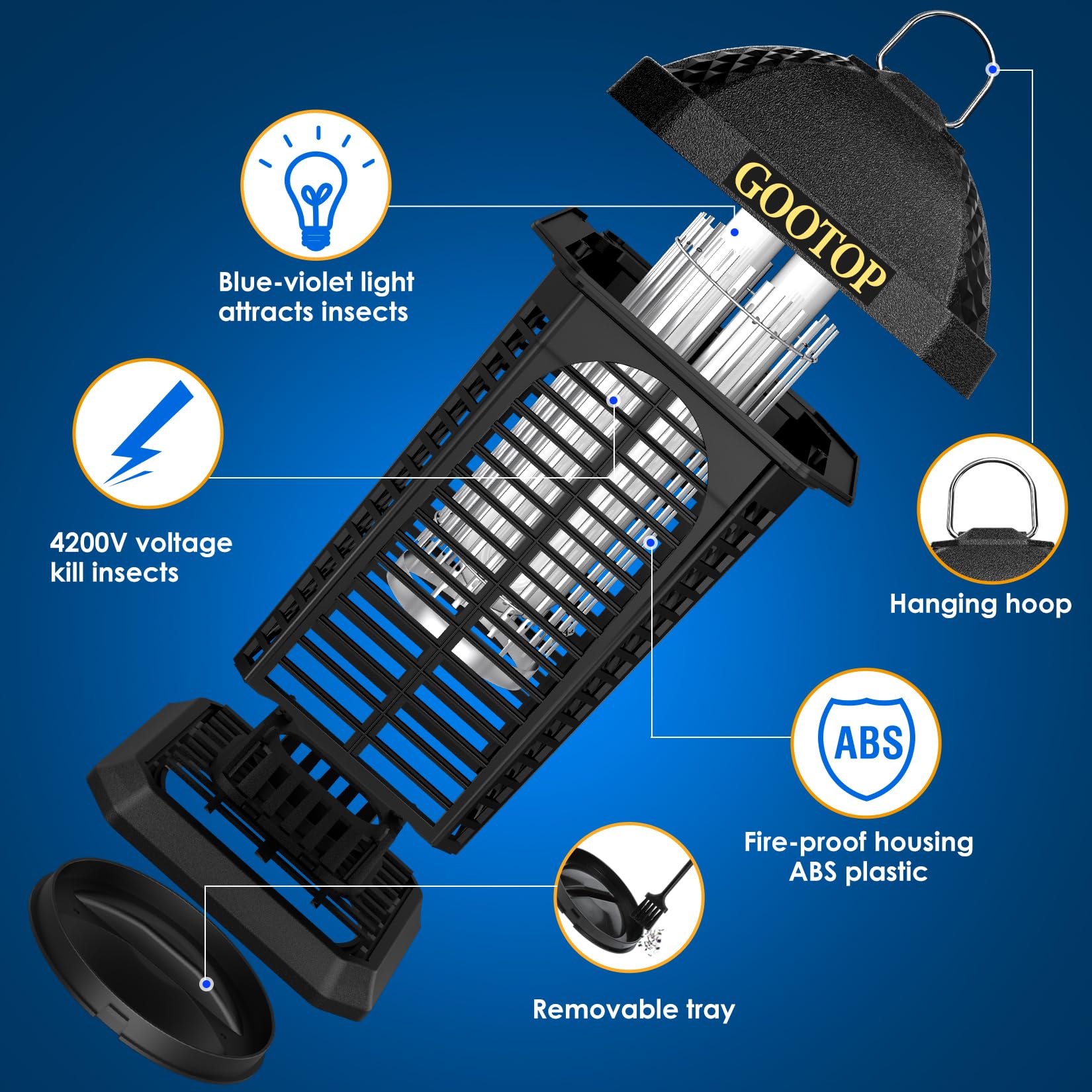 Bug Zapper Indoor Outdoor, 4200V Electric Mosquito Zapper, Bug Zapper Outdoor, Fly Traps, Fly Zapper, Mosquito Killer Indoor 3 Prong Plug, 90-130V, ABS Plastic Outer