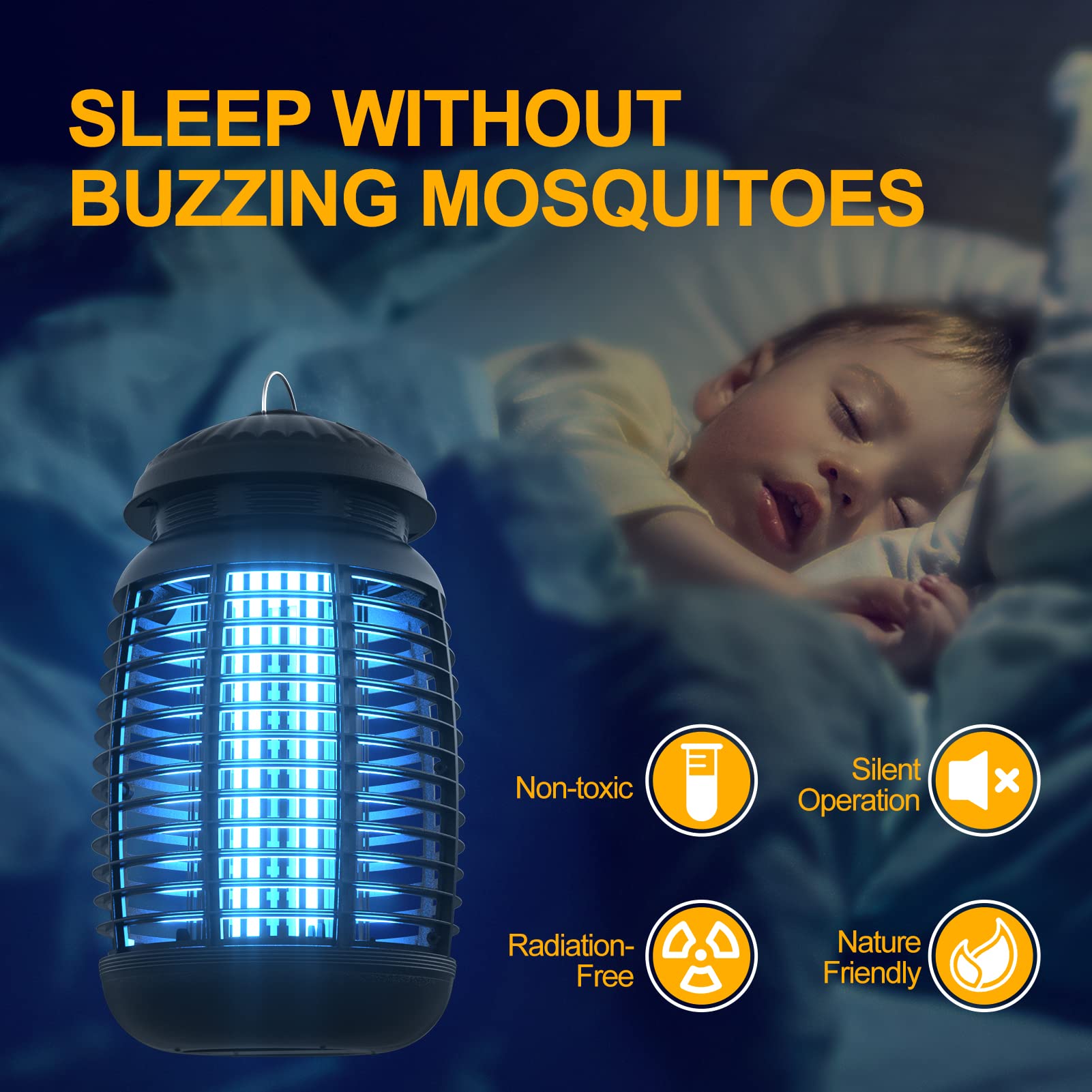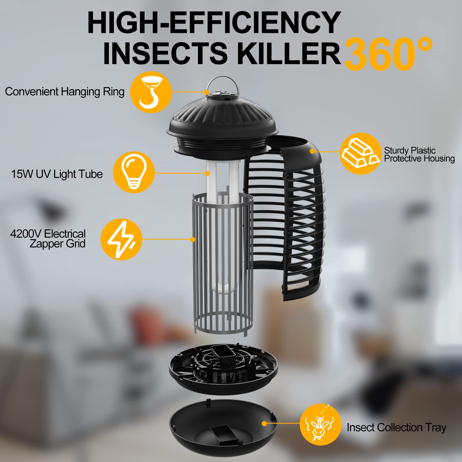 • WORKS ON MOST INSECTS: The mosquito zapper indoor and outdoor uses UV light to attract mosquitoes, gnats, Aedes mosquitoes, flies, fruit flies, moths, ladybugs and other insects. Then the high voltage 4200V grid will trap and electrocute the mosquitoes and flying insects immediately.