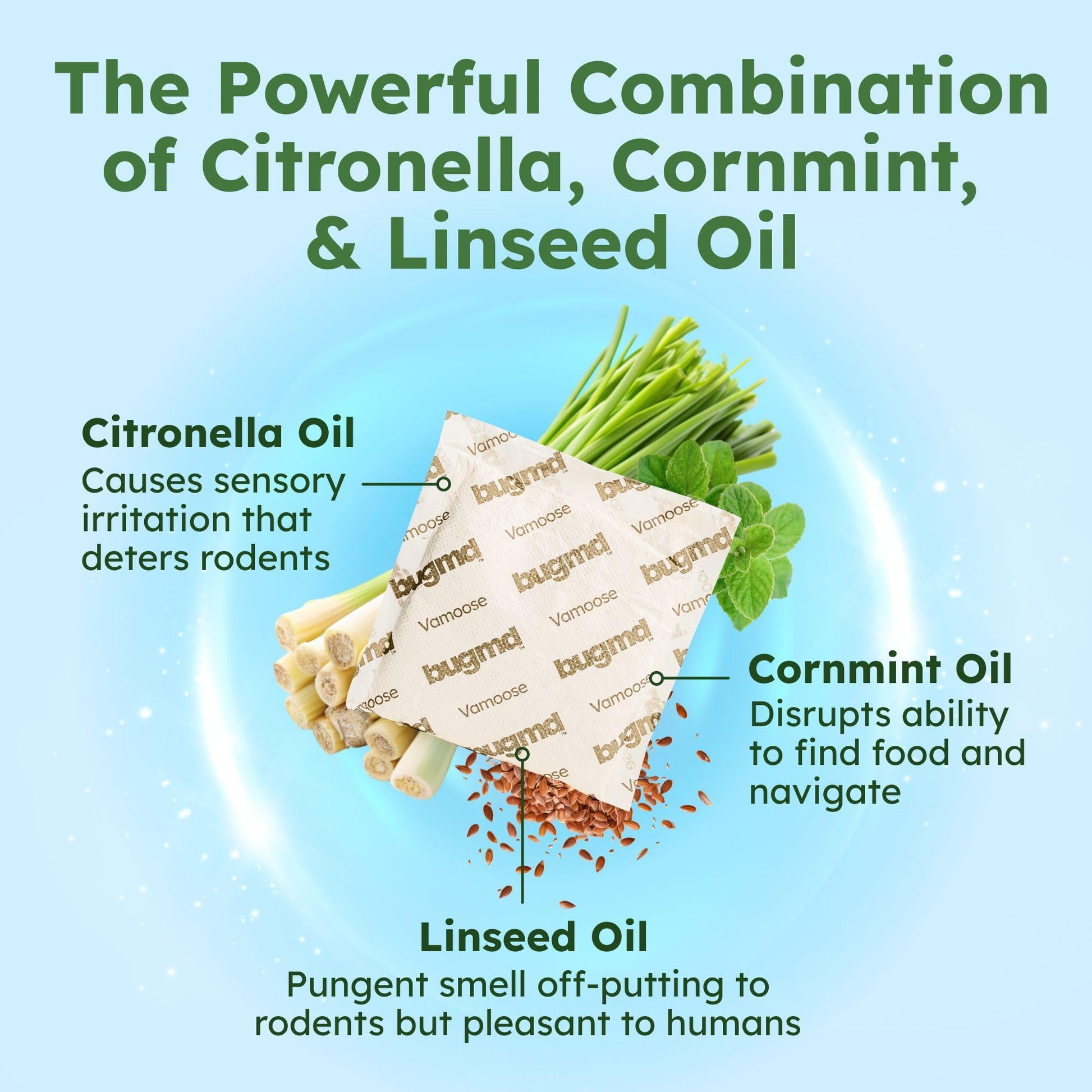 • Plant-Powered Formula: Vamoose is infused with cornmint, citronella, and linseed oils, each proven to repel mice and rats.