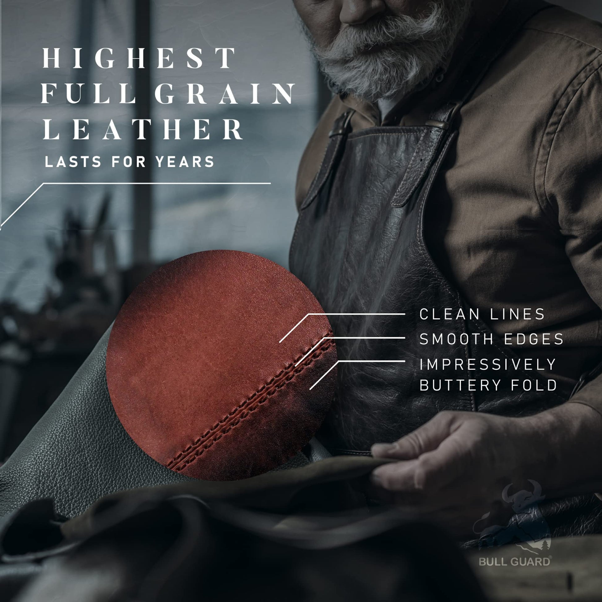 BULL GUARD Rfid Leather Wallet | The Respected Gentlemans Bifold Slim for Men | Travel Secure RFID Blocking | Mens Full Grain Leather Wallet with Removable ID Credit Card Holder