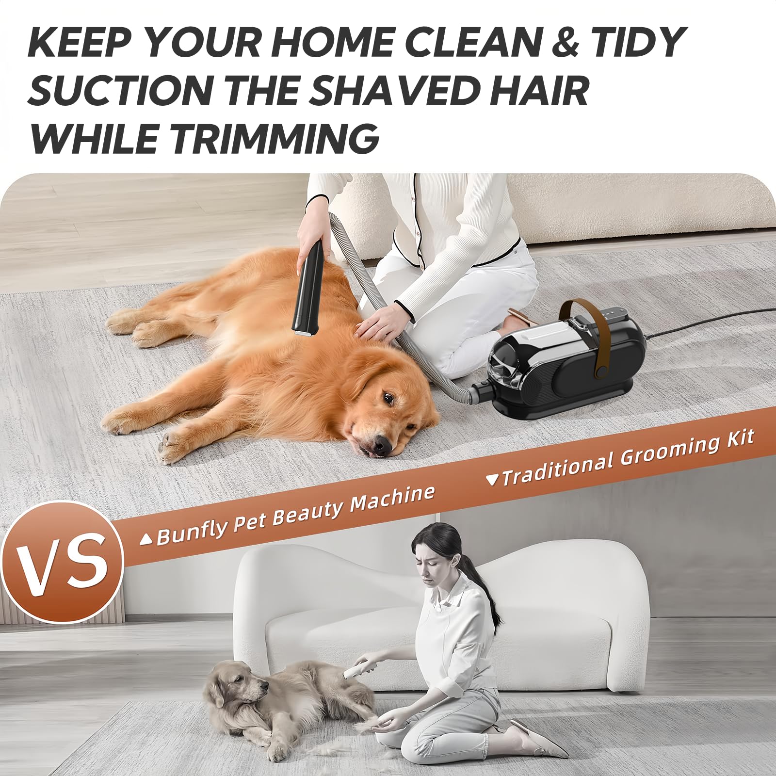 Bunfly Dog Grooming Kit with 13000kpa Strong Grooming & Vacuum Suction 99% Pet Hair,3L Capacity,11 Grooming Tools Dogs Cats and Other Animals,Home and Car Cleaning -Black