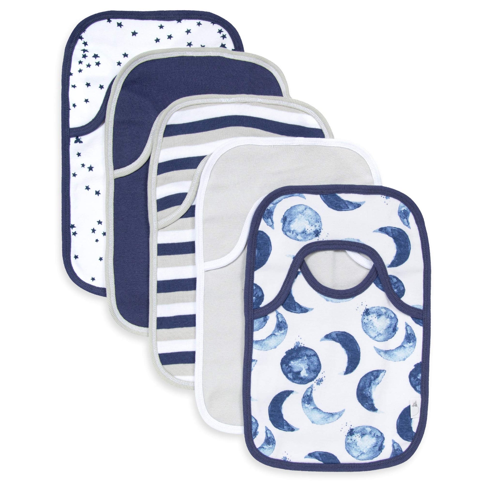 Burt's Bees Baby - Bibs, 5-Pack Lap-Shoulder Drool Cloths, 100% Organic Cotton with Absorbent Terry Towel Backing (Hello Moon!)