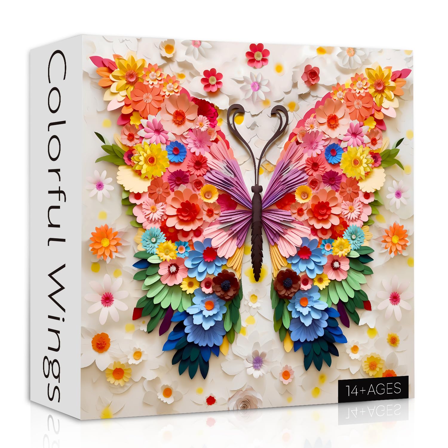 • Colorful Paper Art Puzzle: The puzzle depicts a large butterfly made of colorful flowers, with symmetrical wings and delicate feathers. The perfect combination of paper cutting craftsmanship with colorful petals, gradient effects and gold embellishments presents delicate and intricate details, making it lifelike