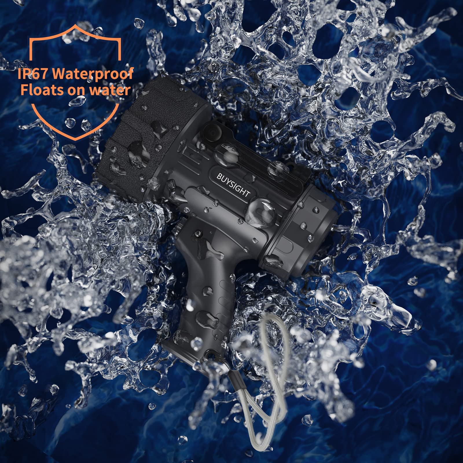 BUYSIGHT Rechargeable Spotlight Flashlight,1000,000 lumens Hand held Spotlight Waterproof Flashlight Hunting Lamp with red Filter (Graphite Black)