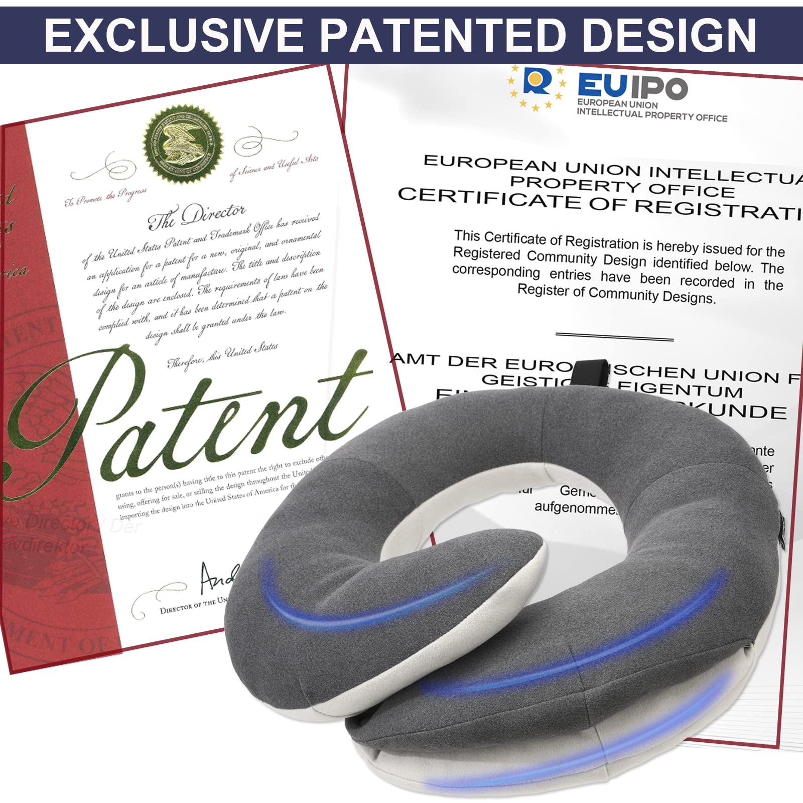 BUYUE Travel Neck Pillows for Airplanes, 360° Head Support Sleep for Long Flight, Skin-Friendly & Breathable, Kit with 3D Contoured Eye Mask, Earplugs and Storage Bag (Adult, Grey, 90+ lbs)