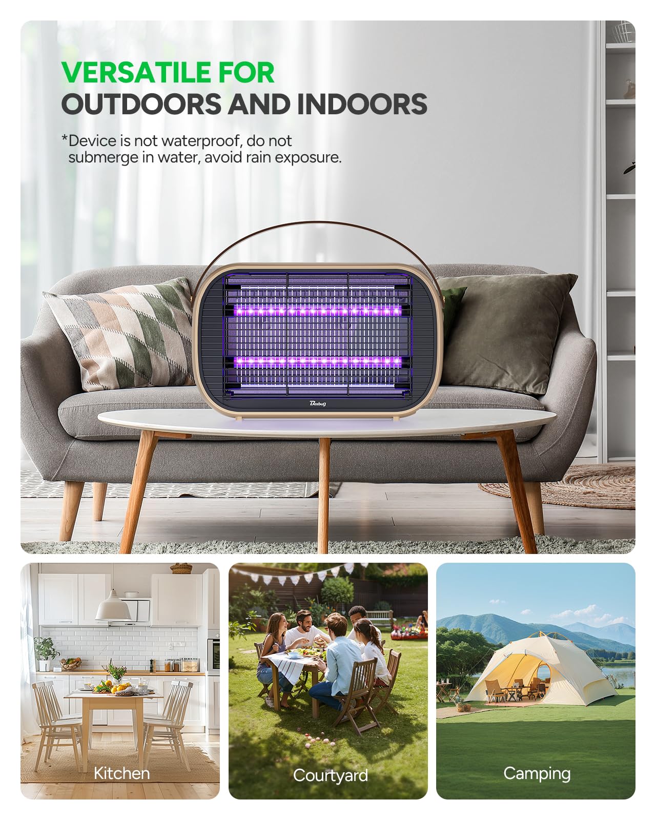• Cordless, Free for Outdoor Use: The wireless and portable design makes the mosquito killer ideal for outdoor patios and camping. The mosquito zapper is perfect for outdoor areas without power outlets and can also be used indoors for extended periods. The convenient hanging rope design makes it easy to hang or place upright.