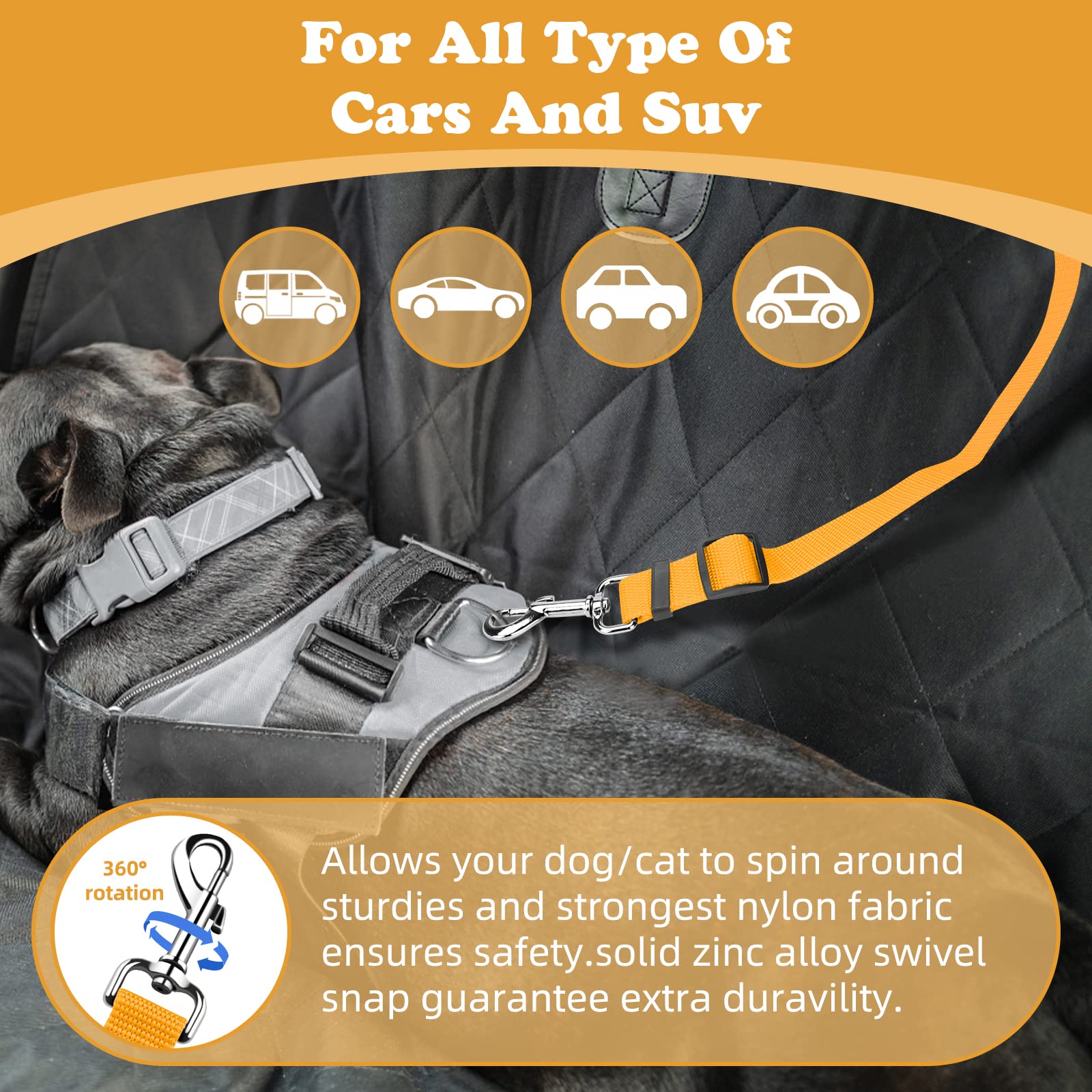 • HIGH QUALITY: Made of high quality nylon fabric to ensure safety, features the solid zinc alloy swivel snap,elastic bungee and quality buckles, The reflective stitching design makes it great for night time use. The elastic bungee helps dog prevent jerking with sudden movement. the pet car seat belt ensures the most safest traveling for your pet, and provides a most relaxing driving experience for you.