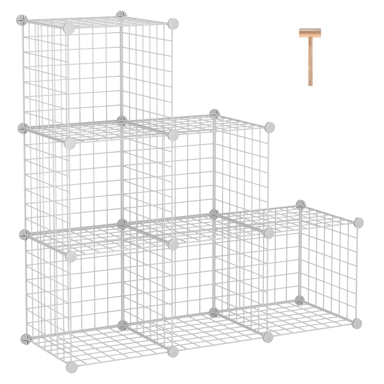 C&AHOME Wire Cube Storage, 6 - Cube Organizer Metal C Grids, Modular Shelves Units, Storage Bins Shelving, Closet Organizer, Ideal for Home, Office, Living Room, 36.6”L x 12.4”W x 36.6”H White