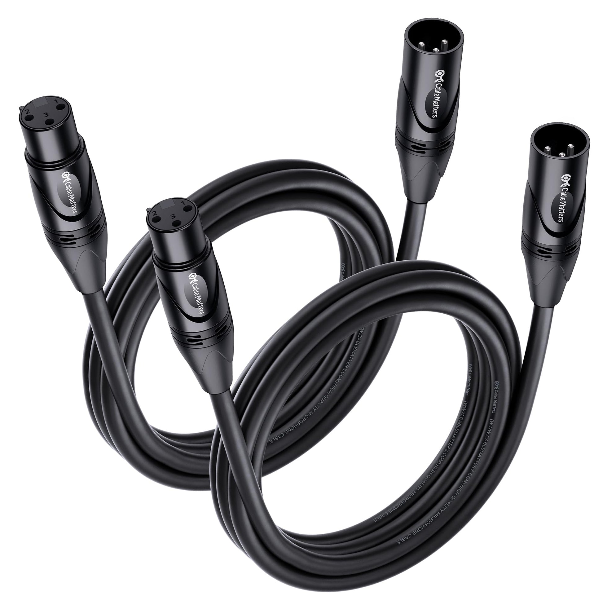 Cable Matters 2-Pack Premium XLR to XLR Cables - 6ft, Male to Female Microphone Cable, Oxygen-Free Copper (OFC) Mic Cord, Black