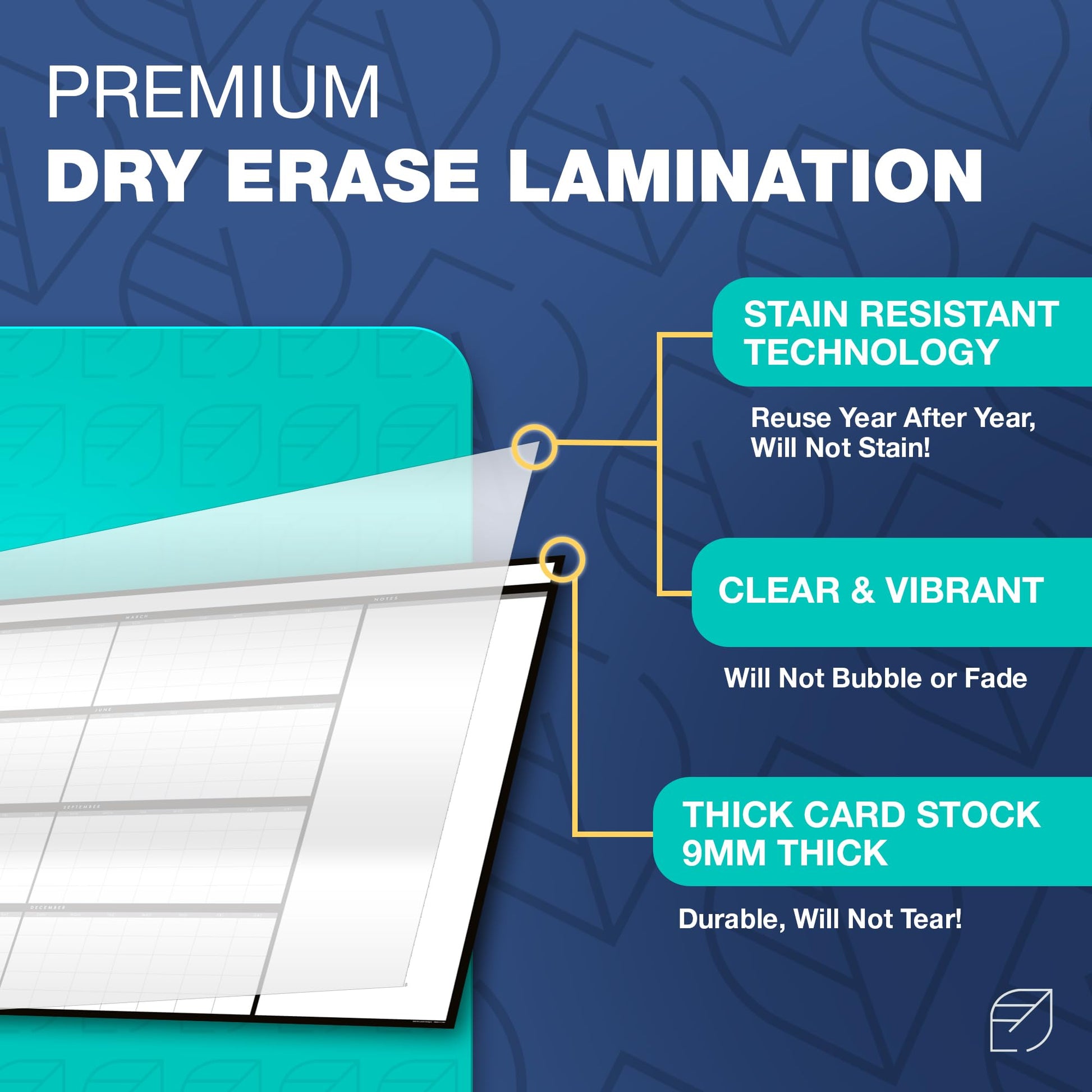 • Superior Erasability: Experience flawless writing and erasing on our dry erase calendar. Featuring a specially treated laminated surface, our calendar ensures smooth writing with dry, wet, and chalkboard markers, guaranteeing clear wipe-offs every time without ghosting or staining.