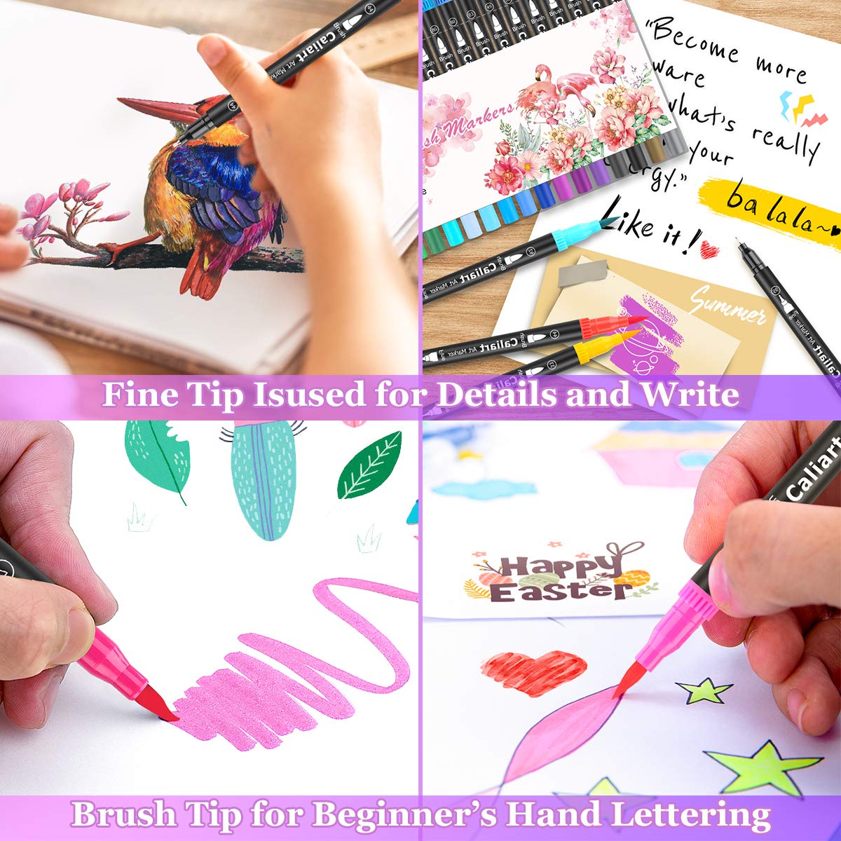 Caliart 34 Double Tip Brush Pens Art Markers, Aesthetic Cute Preppy Stuff School Supplies, Artist Fine & Brush Pen Coloring Markers for Kids Adult Book Cards Drawing Craft Kit Teacher Office Supplies