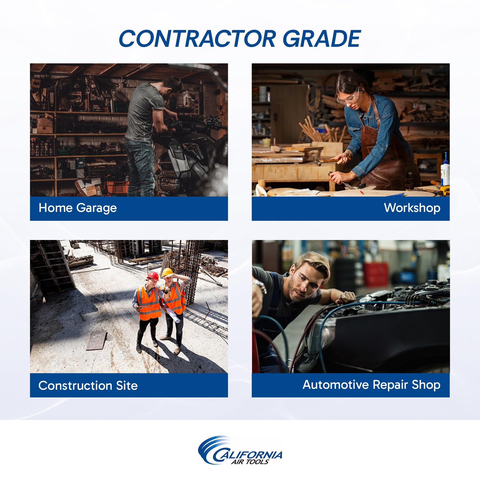 Details: The California Air Tools Light & Quiet Air Compressor redefines high-performance air compressors with a remarkably low noise level of just 56 decibels, making this super quiet air compressor perfect for indoor use where quiet operation is crucial. Powered by a .6 HP motor running at 1680 RPM, this oilless air compressor offers reduced wear and significantly quieter performance. Designed with an oil-free Dual Piston Pump System, it delivers exceptional durability, with a life cycle of over 3000 hours before wear, requiring minimal maintenance. This versatile oil-free air compressor performs reliably in various climates and terrains, offering consistent power for diverse projects. Weighing only 29 pounds, this lightweight air compressoris easy to move and position. Ideal for staple guns, brad nailers, airbrushes, and blow guns, it’s also perfect for household tasks like inflating tires and cleaning. At California Air Tools, we specialize in innovative, user-friendly compressors that balance power and quiet operation. The Light & Quiet Air Compressor enhances your workspace with its superior performance and near-silent operation, designed for both professionals and hobbyists.