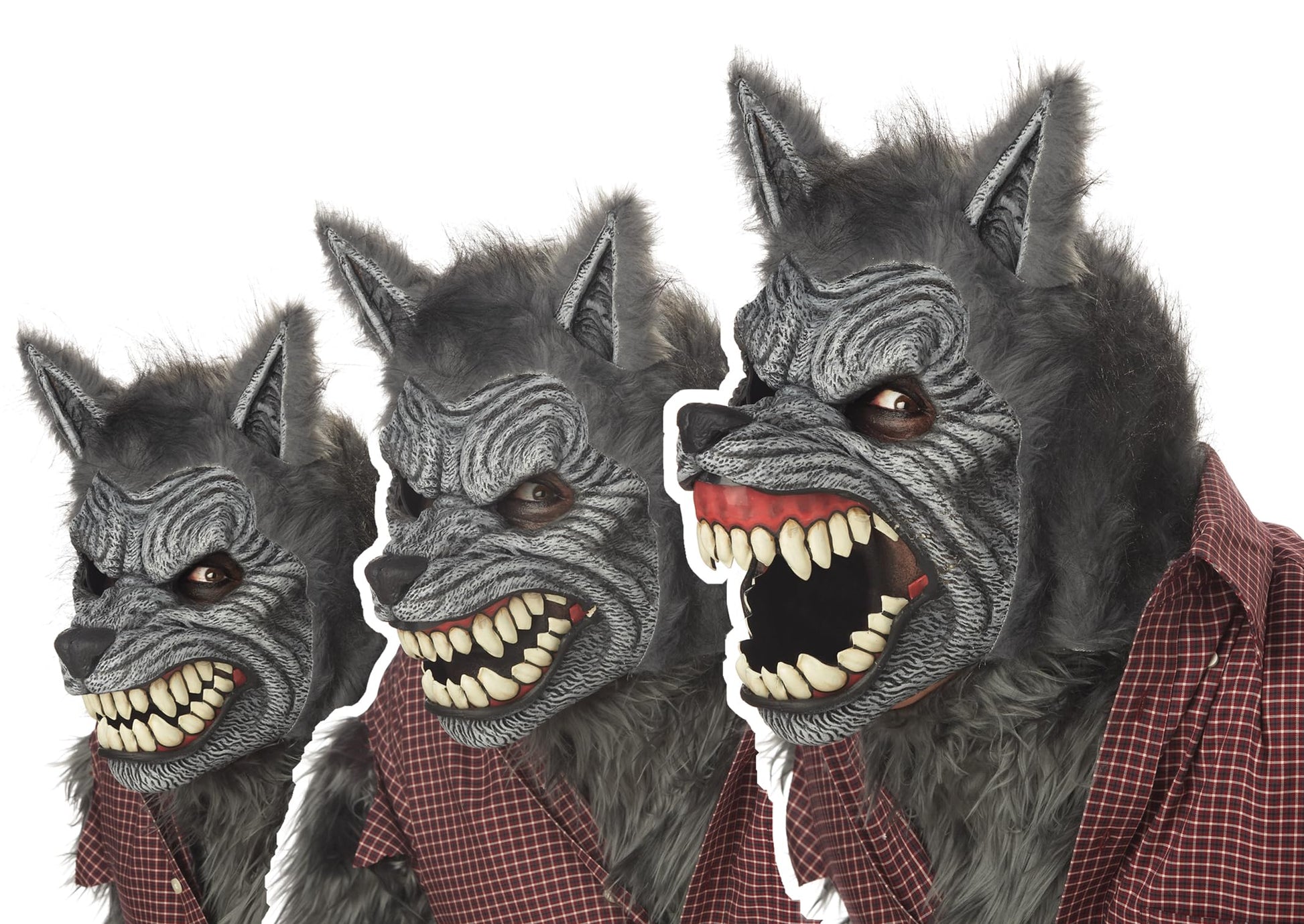 When the moon is out the beast will roar. The Full Moon Madness Costume includes a plaid pattern shirt with attached faux fur torso front, front collar and sleeves. It comes with a motion mask. Mask is made of a rubber foam skin and a plastic under shell. Mask moves open when you open your jaw and retracts back when you close. Mask has Velcro straps in back. The attached faux fur hood wraps around back. Also includes padded foam blocks, cut and stick the foam inside the mask if needed. From the Manufacturer