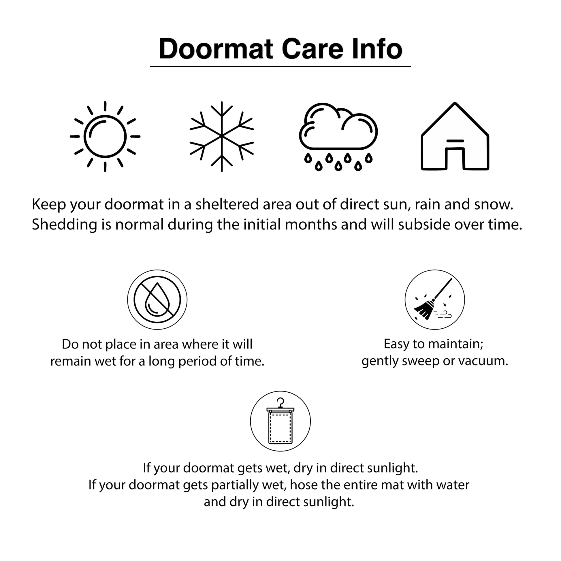 Details: Made of coir, a dense fiber that is durable and coarse, excellent for scraping shoes clean. Vinyl backed for increased durability and to help prevent movement and retain their shape. For best results keep in a sheltered area such as a covered porch. Vacuum, sweep or lightly hose clean.