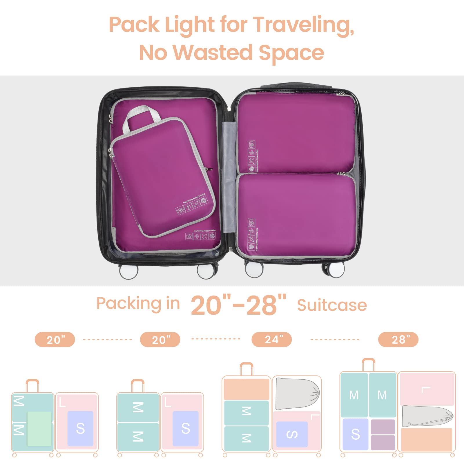 Pack More in Less Space: Maximize your luggage space with our space saving packing cubes for travel! The compression zipper design helps save up to 50% storage space, allowing you to fit up to 50% more in the suitcase; it can also compress clothing securely to prevent shifting and wrinkles. Perfect for travelers who want to pack efficiently
