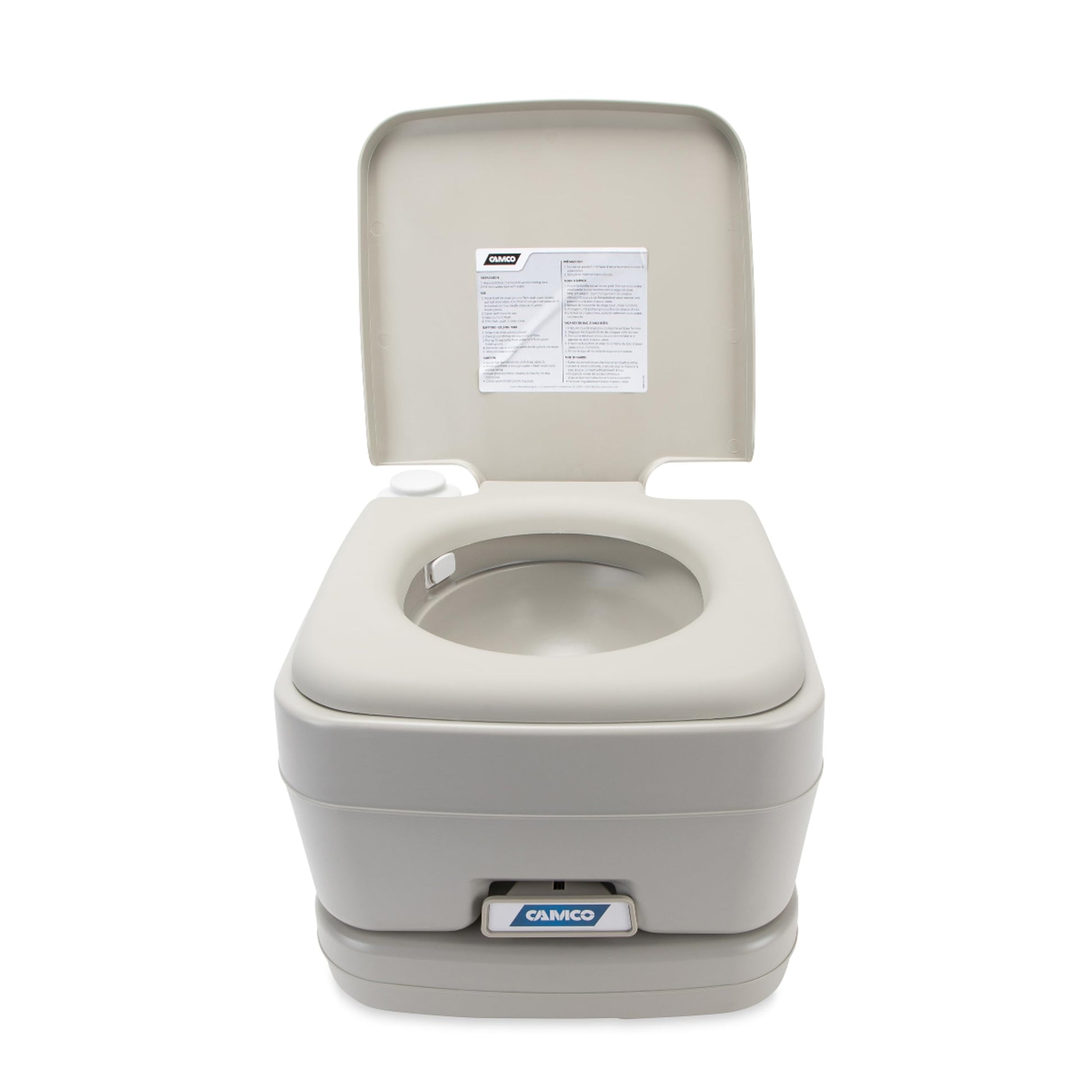 Details: Elevate your outdoor adventures with Camco’s versatile 2.6-Gallon Portable Toilet for camping, designed to provide a hygienic and convenient restroom solution while RVing, camping, boating, going on road trips, and more. This outdoor toilet guarantees access to a clean and dependable toilet, no matter where your adventures lead. It’s the ultimate sanitation sidekick for adventurers who value cleanliness, convenience, and peace of mind. No longer worry about unsanitary pit stops or inconvenient bathroom breaks. This portable toilet for adults allows you to embrace the call of the wild without compromising on cleanliness or comfort. Built to prioritize functionality and portability, this camping toilet is compact and lightweight, making it easy to transport. And the convenient carry handle provides simple carrying. Three sample Drop-IN RV black tank treatments are included to control unwanted odors. Transform your adventures with the peace of mind that comes from Camco's Portable Toilet— where comfort and sanitation travel with you, making every destination feel like home!