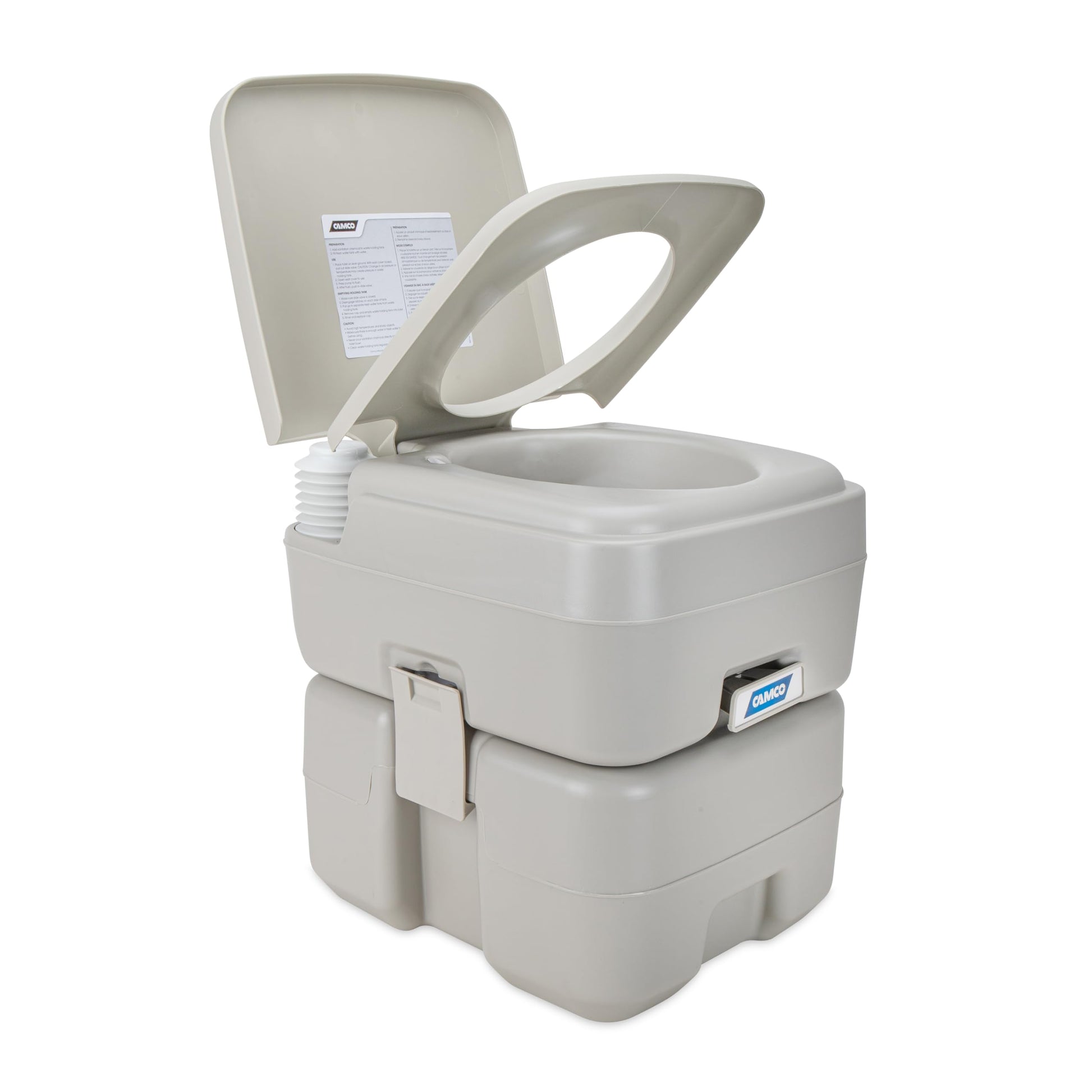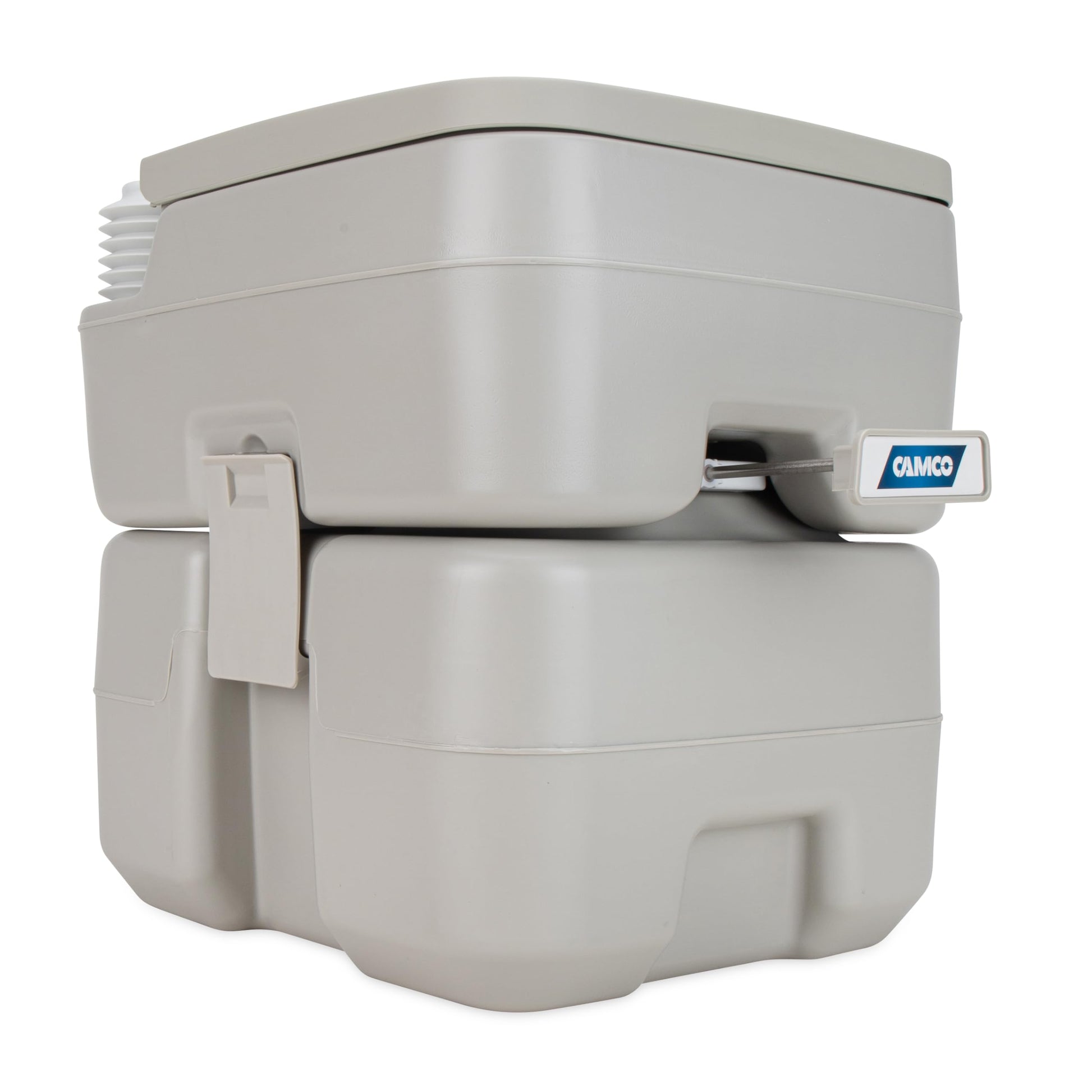 Details: Elevate your outdoor adventures with Camco’s versatile 5.3-Gallon Portable Toilet for camping, designed to provide a hygienic and convenient restroom solution while RVing, camping, boating, going on road trips, and more. This outdoor toilet guarantees access to a clean and dependable toilet, no matter where your adventures lead. It’s the ultimate sanitation sidekick for adventurers who value cleanliness, convenience, and peace of mind. No longer worry about unsanitary pit stops or inconvenient bathroom breaks. This portable toilet for adults allows you to embrace the call of the wild without compromising on cleanliness or comfort. Built to prioritize functionality and portability, this camping toilet is compact and lightweight, making it easy to transport. And the convenient carry handle provides simple carrying. Three sample Drop-IN RV black tank treatments are included to control unwanted odors. Transform your adventures with the peace of mind that comes from Camco's Portable Toilet— where comfort and sanitation travel with you, making every destination feel like home!