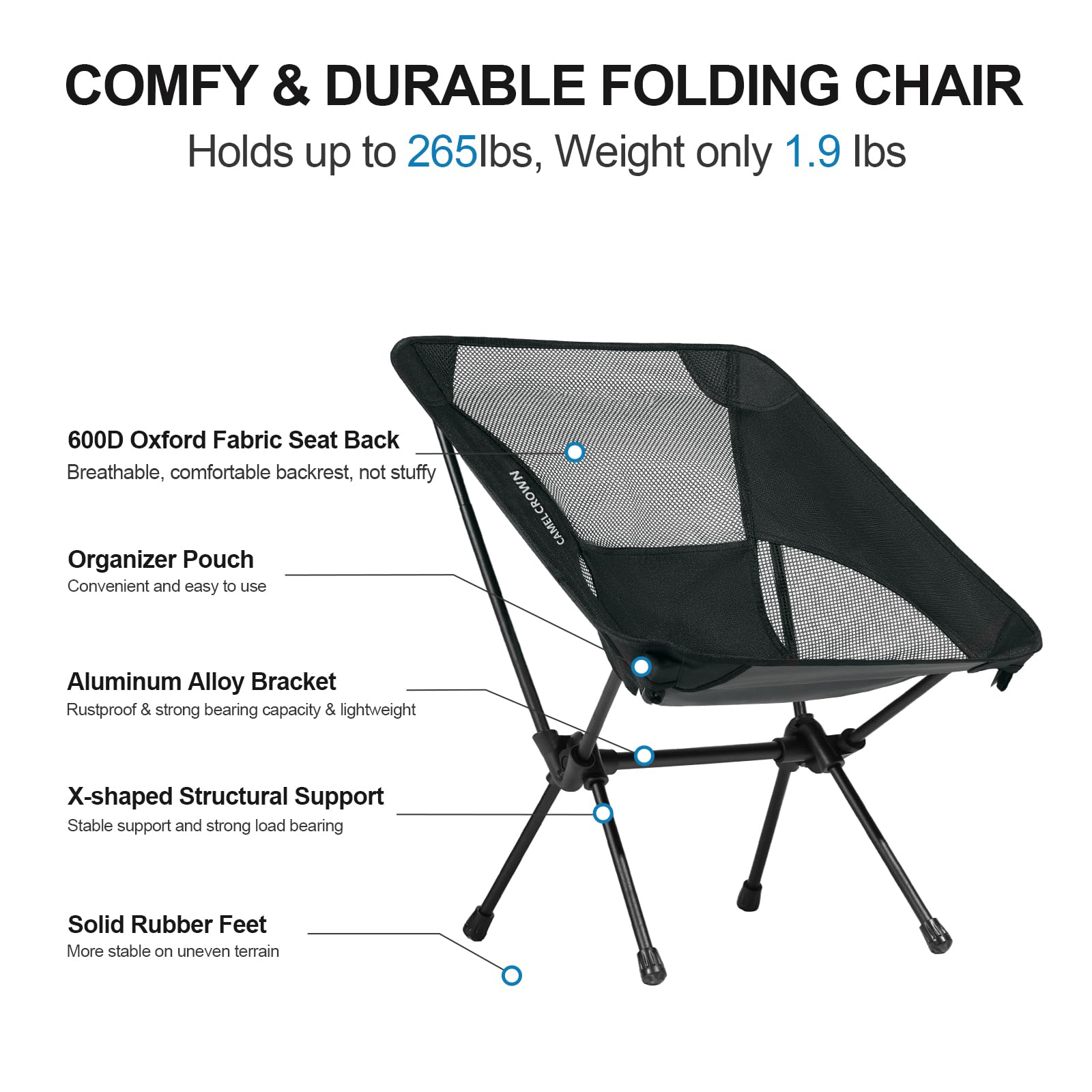 CAMEL CROWN Portable Camping Chair Lightweight Compact Folding Chair Mesh for Outdoor Camp Travel Beach Picnic Festival Hiking Backpacking Black