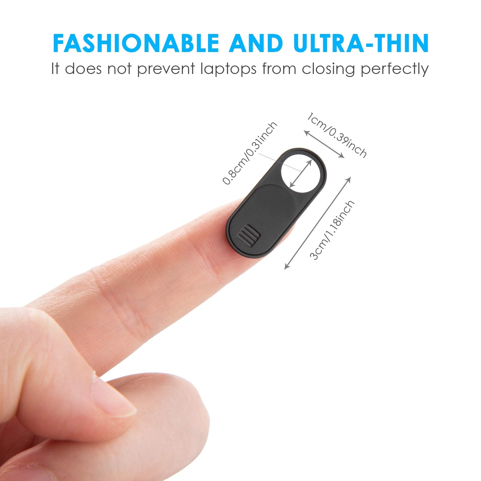 • 【Extremely Thin And Durable】Made of flexibilty ABS Plastic, durable and won't easily break. And measuring the webcam cover only 0.028 inches in thickness, you won't even notice it adheres and it will not interfere with the closing or opening the lid of your laptop. And this laptop camera cover has a curve design, so there will be no sharp places to scratch the computer or phone.