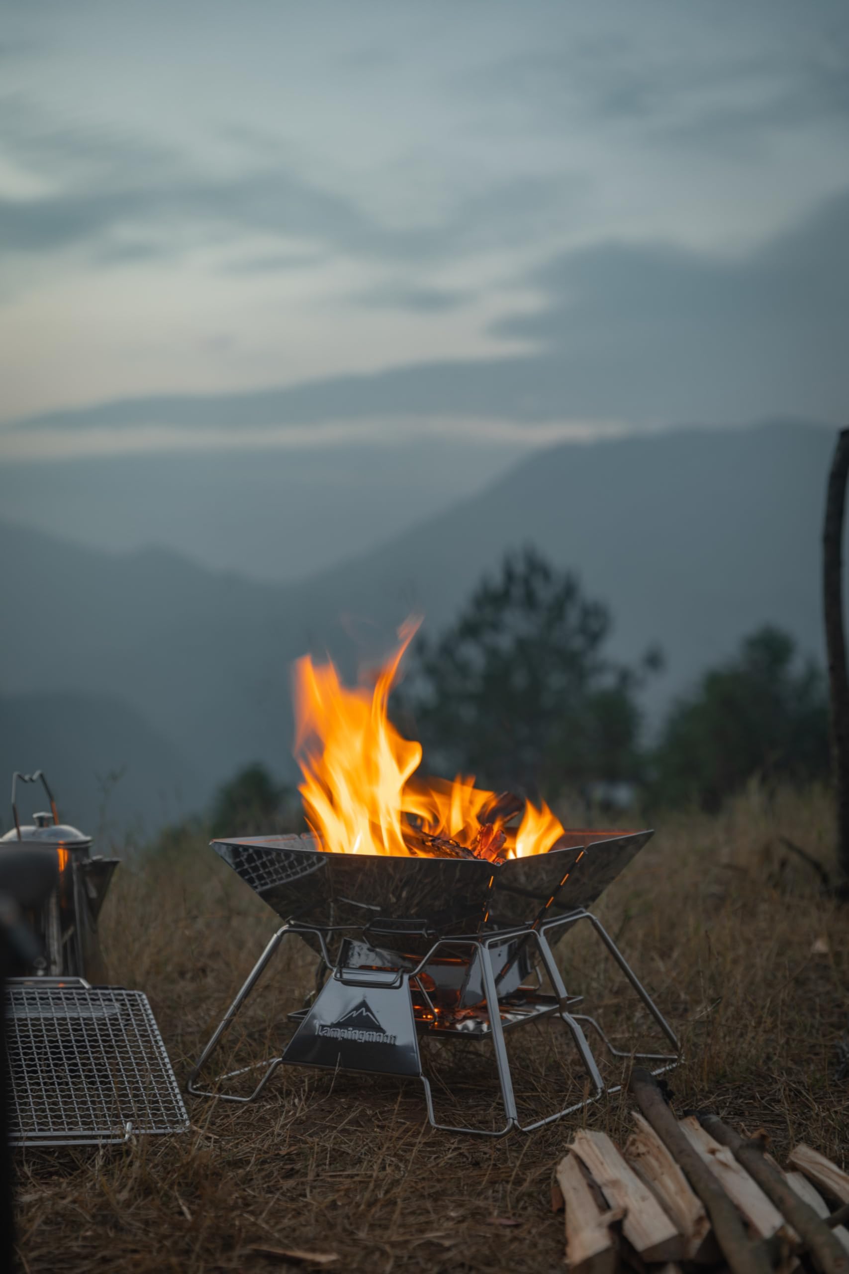 • ★Camping grills recommended for about 3-4 people★Portable camping grill wood burning charcoal grill/stove/fire pit, easy to set up. This stainless steel grill has a stable flame but lightweight. Very convenient for barbecue, camping, beach, RV camping and other outdoor occasions.