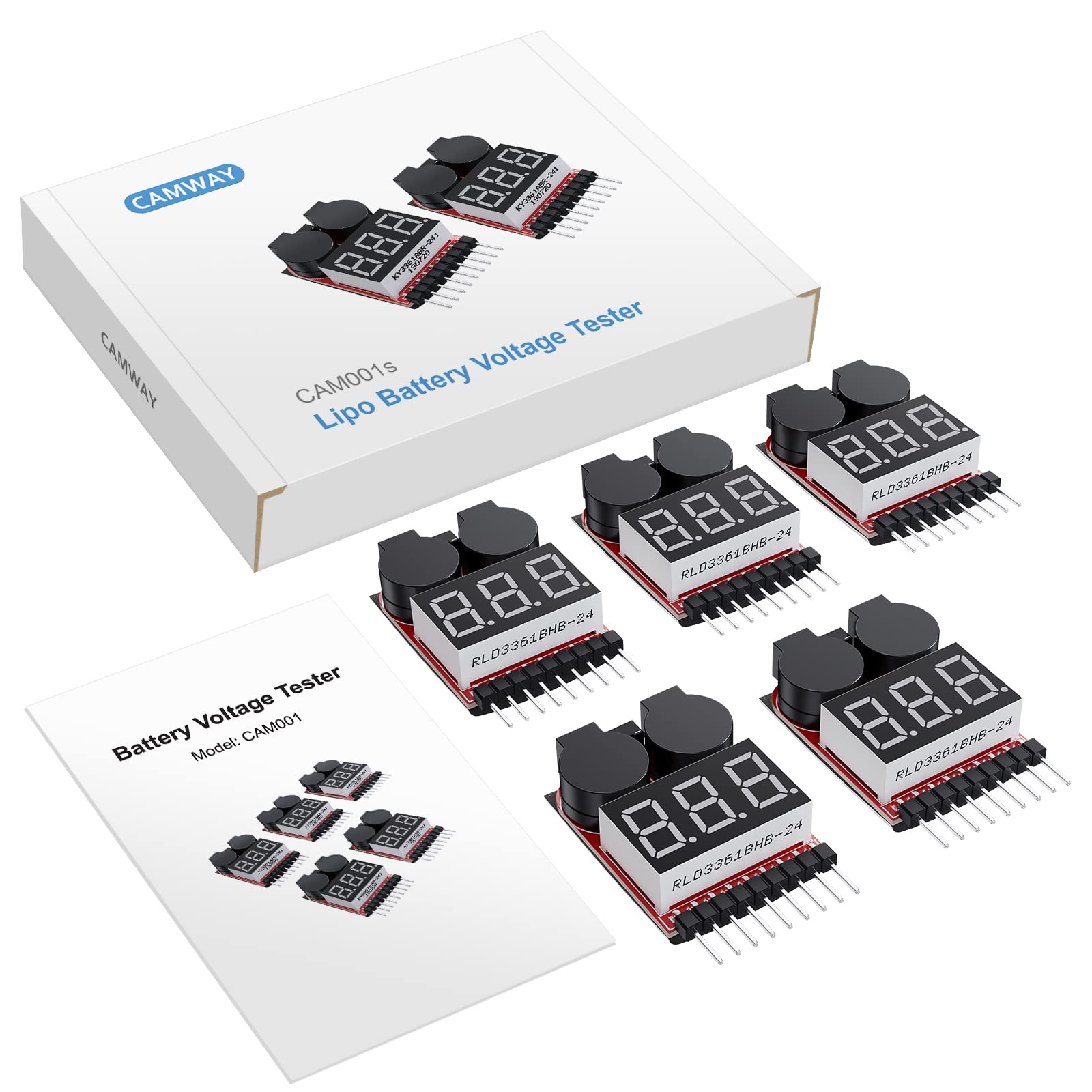 CAMWAY 5PCS 2in1 1-8s Lipo Battery Voltage Tester,RC Low Voltage Buzzer Alarm,Battery Monitor Checker Tester for 1-8s Lipo/Li-ion/LiMn/Li-Fe