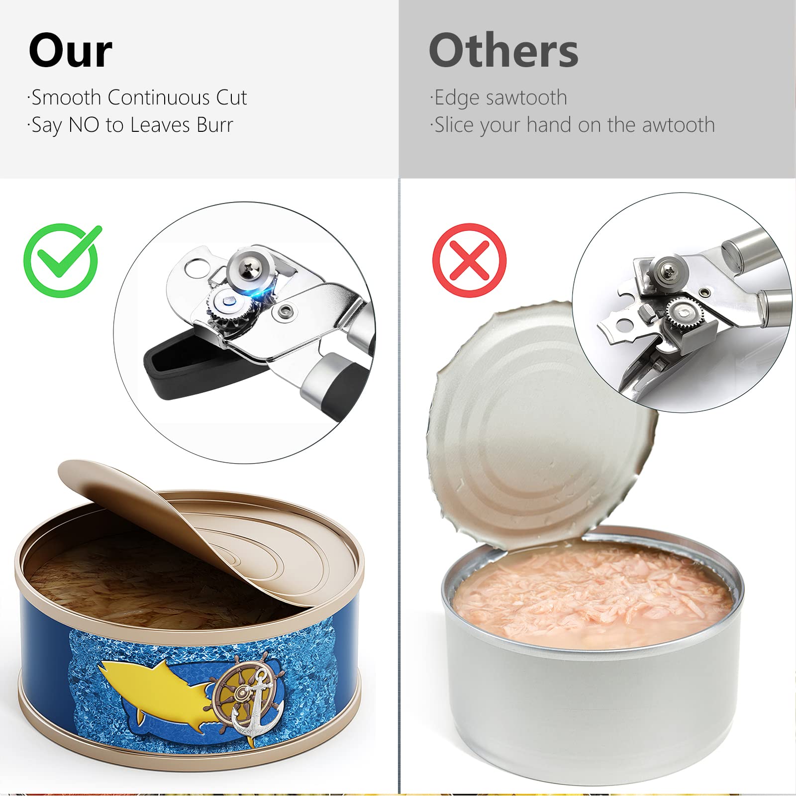• The sharp metal blade is easy to insert into the can lid. The edge of the can after trimming is smooth and sleek. No scratches, no burrs and sharp gears. Therefore, you don’t have to worry about being cut by sharp edges when you take out food from the can.