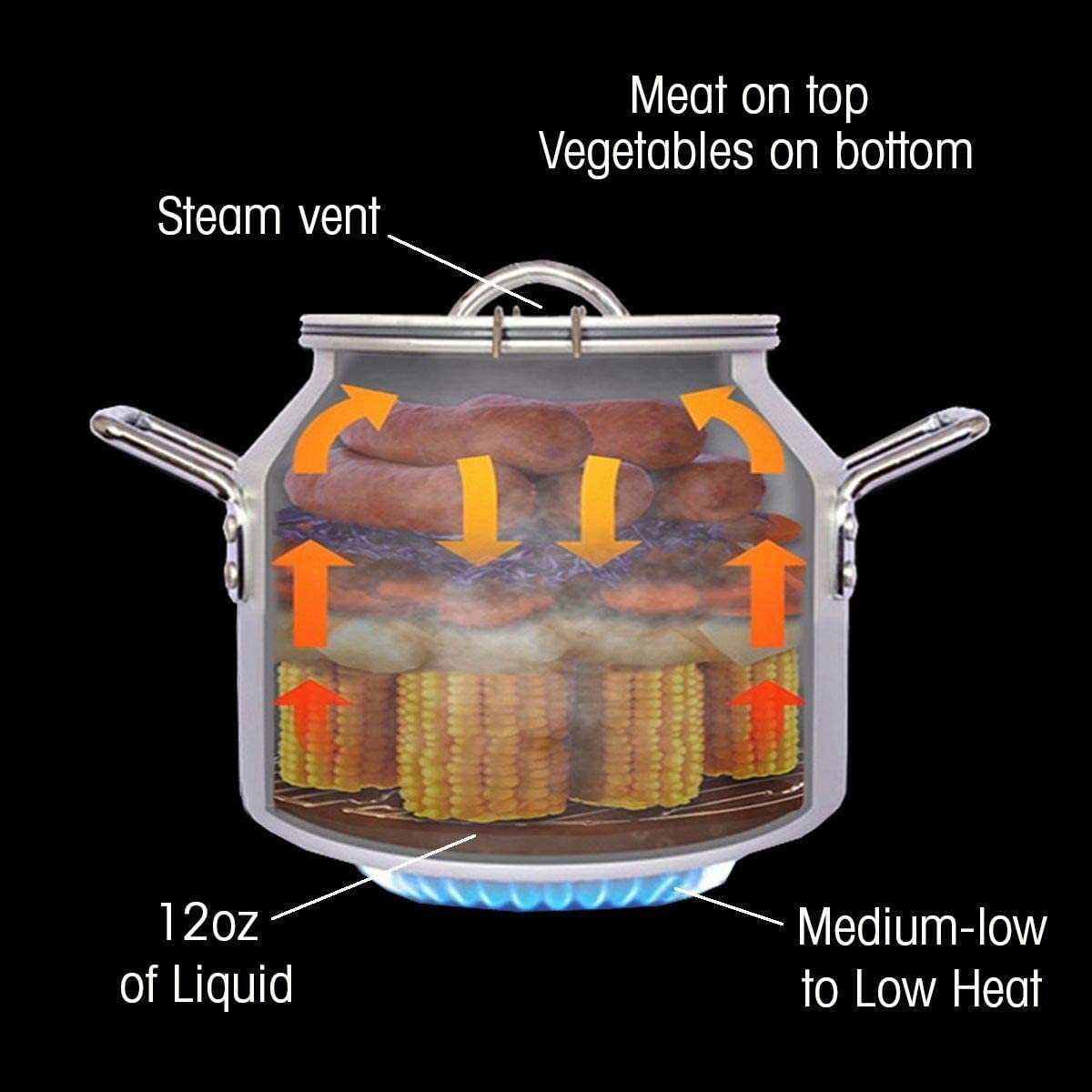 • FOOD STEAMER: Uses steam, creating a natural convection that cooks food fast and keeps in all the flavors and nutrients. Ideal Cooking Steamer for Camping, Hiking, Travel, RV, Fishing, Tailgating & more.
