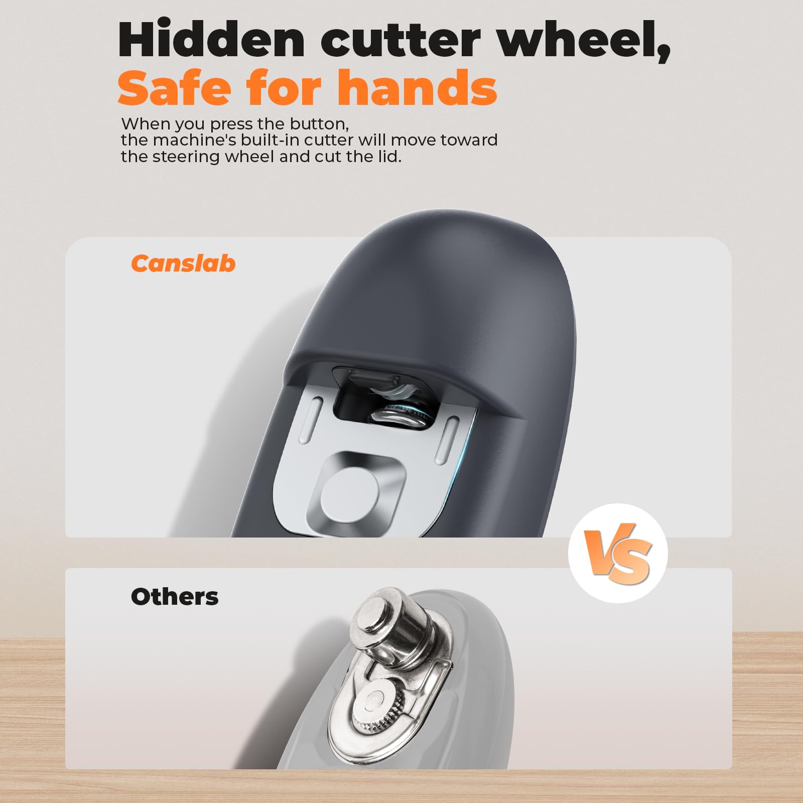 canslab Ultrablde SE - USB Rechargeable Electric Can Opener for Kitchen for Seniors with Arthritis- Cordless Battery Powered Automatic, Side Cut, Smooth Edge, Handsfree, for Small or Large Cans, Grey