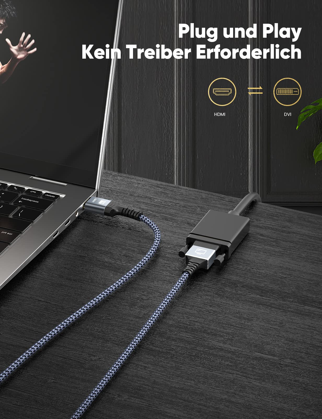 Capshi HDMI A to DVI Adapter Cable 6FT, High-Speed Gold-Plated Plug and Play Bi-Directional Nylon Braid 1080p, DVI to HDMI Adapter for Televison/Monitor/Video Card/Graphics Card