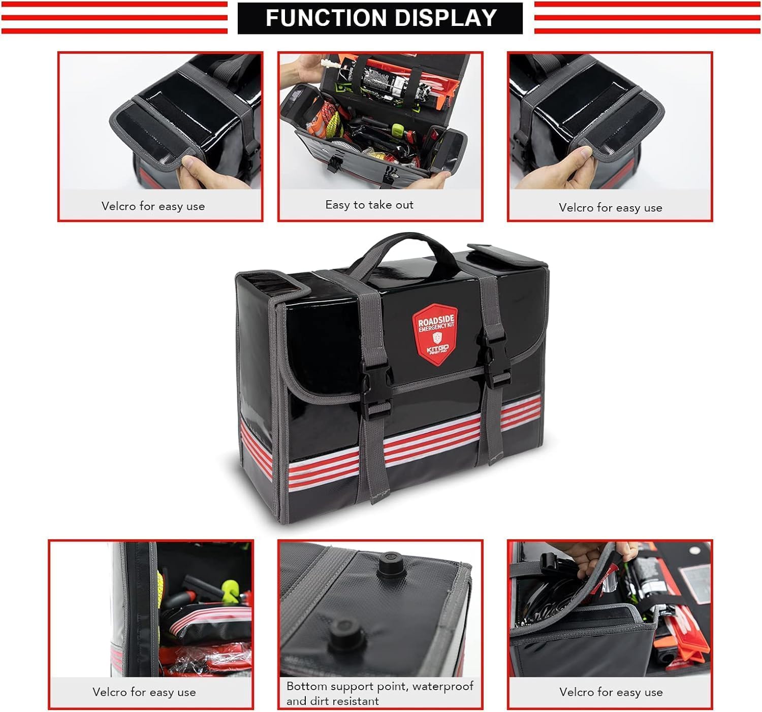 • AN AMAZING GIFT: A must have emergency pack for new drivers, experienced drivers or anyone who owns a car, truck or RV, in case of your car, SUV or truck get stranded, unexpectedly breakdown on the road, especially during winter, just store this premium car emergency kit in your rear trunk and go on a no-worry roadtrip.