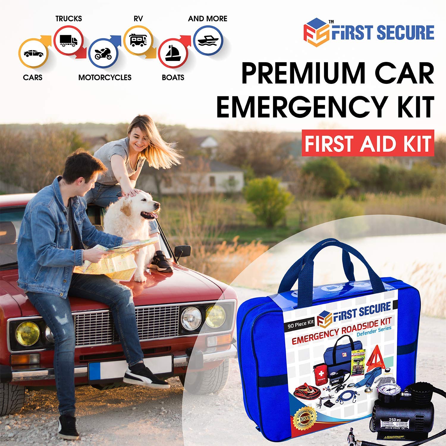 • Durable Performance: Unlike other car safety kits with flimsy tools that break easily, our First Secure Car Emergency Kit includes strong and durable tools designed for top performance and lasting quality, such as 10-foot, 8-gauge, 300-amp jumper cables made of copper-clad aluminum and an 11.8-foot, 10,000 lb high-tensile nylon tow strap.