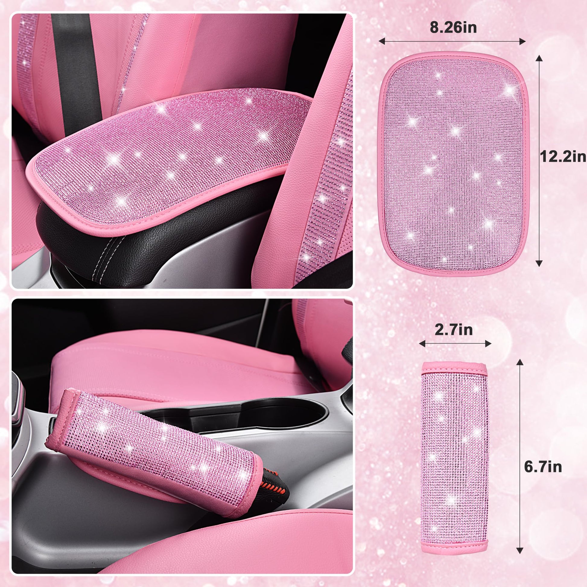 • HIGH-QUALITY MATERIAL - Gorgeous steering wheel flash cover to improve the appearance of steering wheel and interior, diamond seat belt cover to protect your driving safety, two diamond silicone coasters can make the cup holder no longer dirty, diamond Seat Belt Cushion give you a different feel, the full interior will be sparkling and eye-catching in the car.