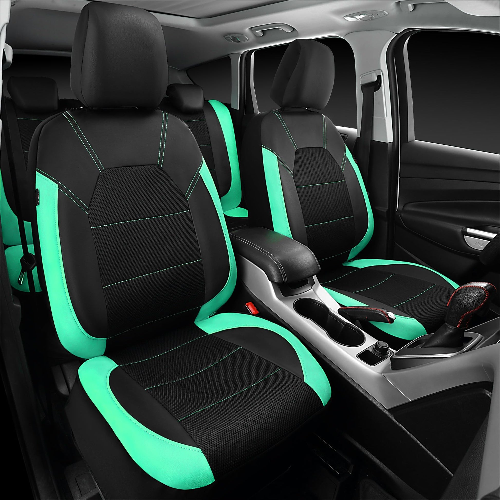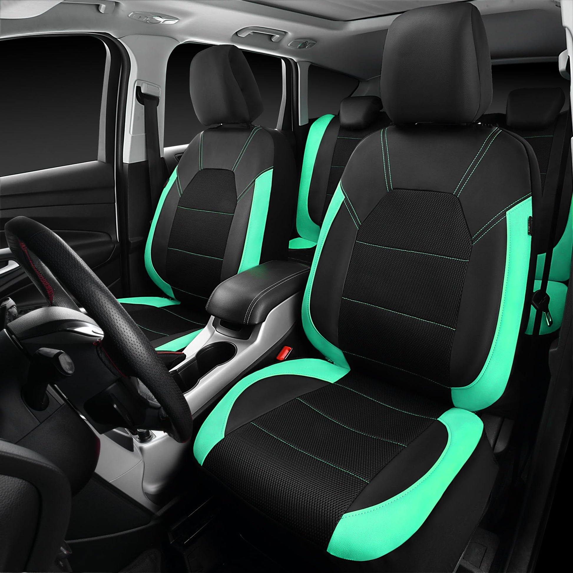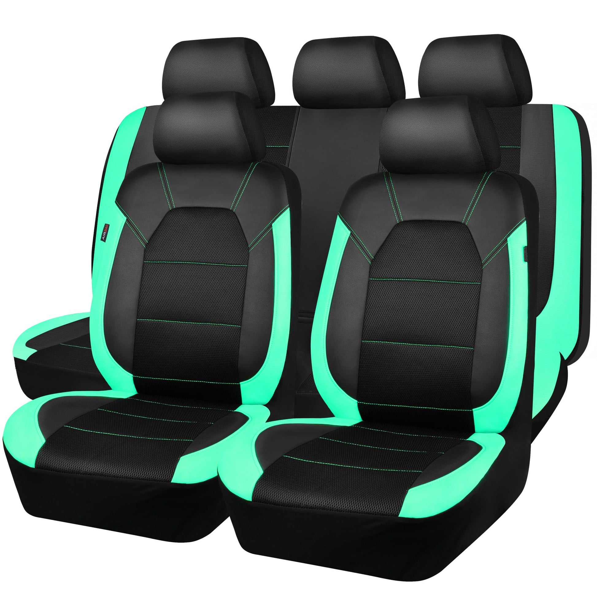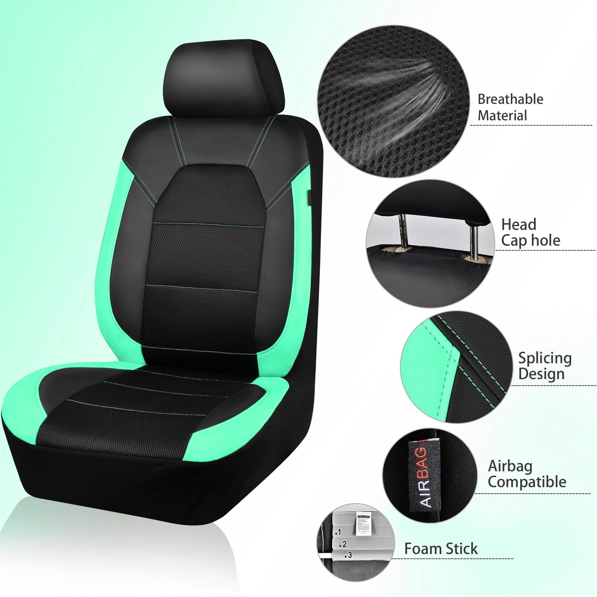 CAR PASS Leather Seat Covers, Breathable Universal Car Seat Cover Full Set for Cute Women Girly,Super 5mm Composite Sponge Inside,Airbag Compatible Fits Most Auto,SUVs,Trucks,Vans(Full Set,Black&Mint)