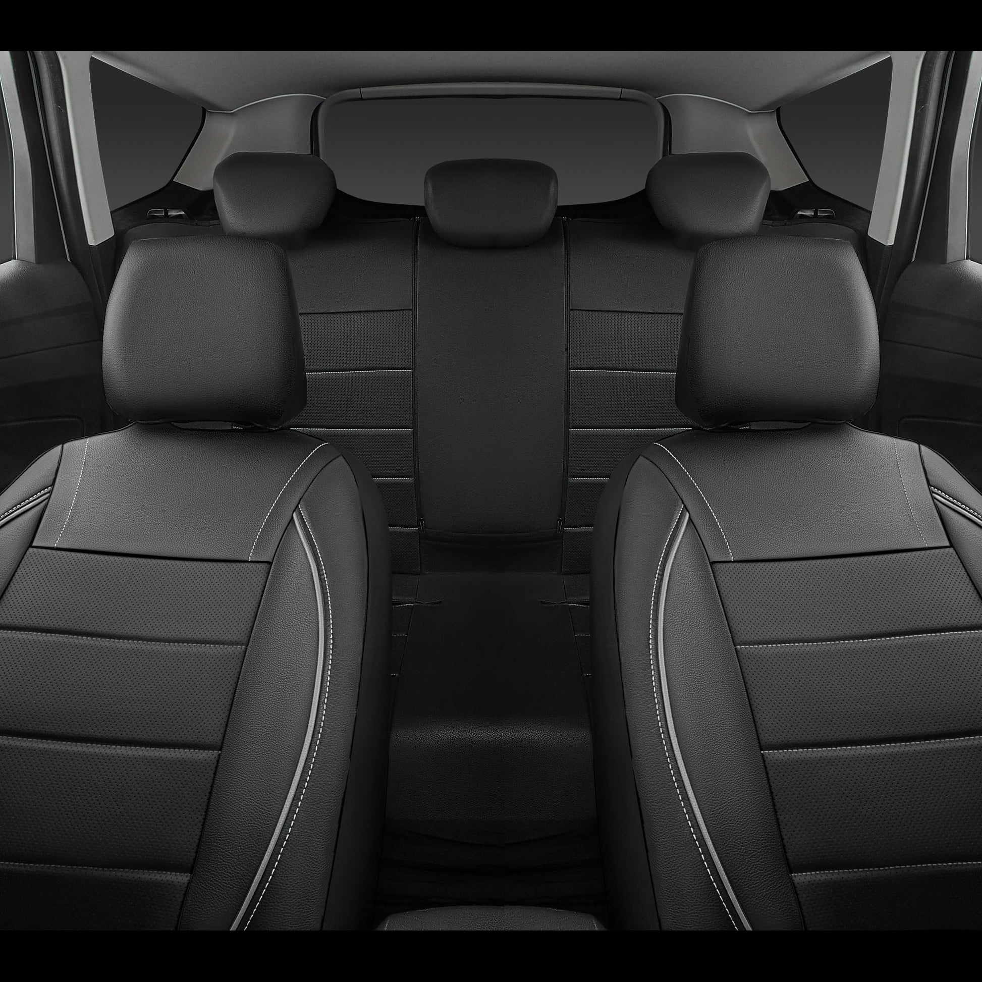 CAR PASS Universal Reflect Piping Leather Car Seat Cover, Fit for suvs,Van,Trucks,Airbag Compatible,Inside Zipper Design and Reserved Opening Holes (Full Set, Black and Grey)