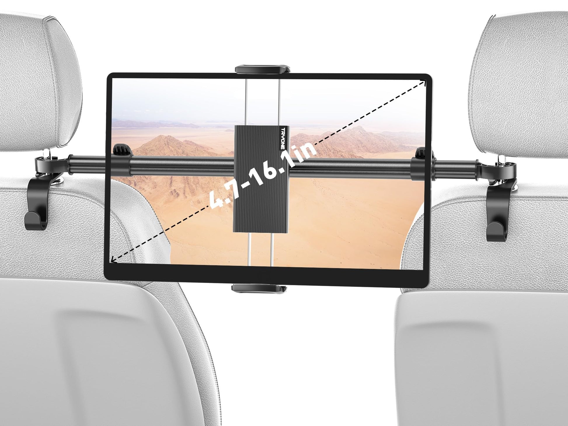 • 【Best Viewing Angle】 This Tryone Car Tablet Holder is specially designed for the rear seat, the tablet holder can be adjusted left and right, with 360° rotation and 75° tilt, whether it is one passenger, two passengers or three passengers, this headrest mount will provide the best viewing position
