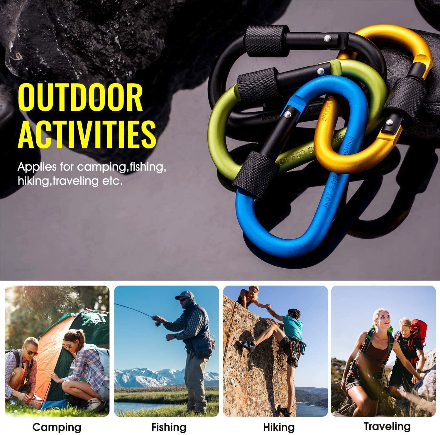 • 【Wide Usage】Our carabiners can be used for hanging kinds of bags, bottles, keyrings, connecting tent and ropes, it's ideal hanging accessorie for outdoor activities, e.g. camping, travelling, fishing. IMPORTANT NOTE : NOT applicable for climbing or hanging hammock.