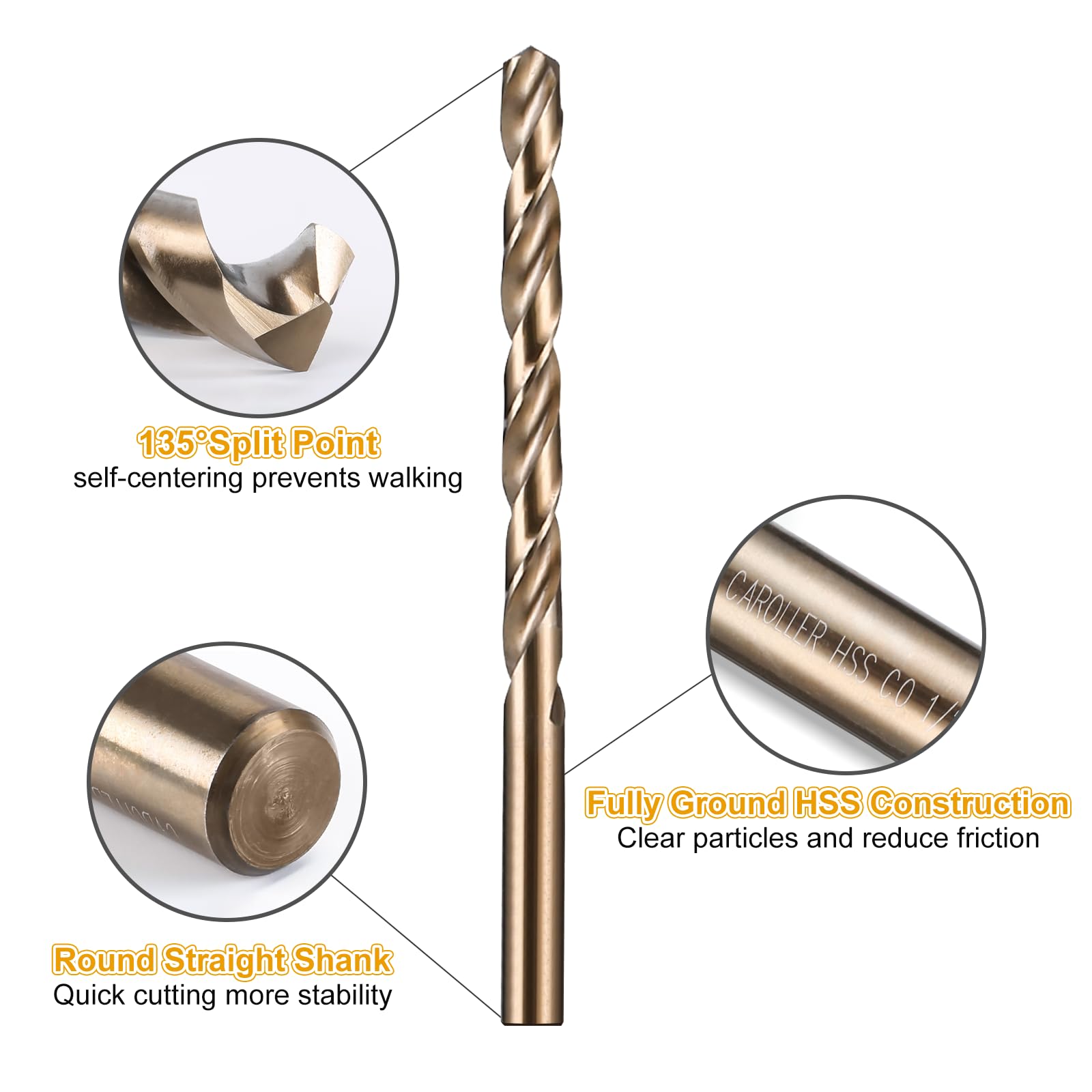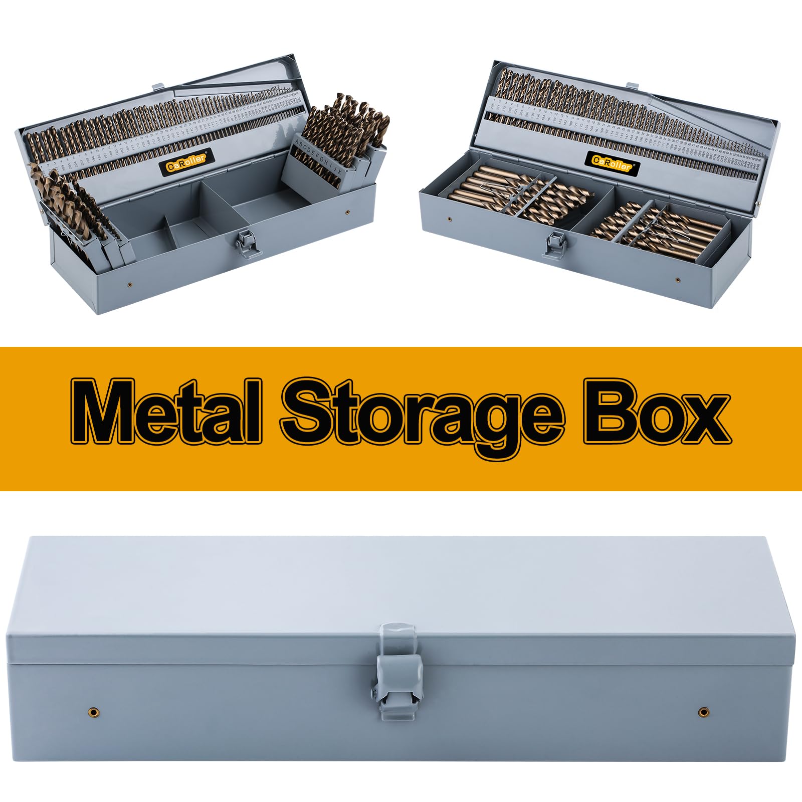 CaRoller Cobalt Drill Bit Set 115 PCS, High Speed Steel M35 Drill Bits Durable Round Shank Drill Sets for Hardened Steel, Wood Plastic, Sheet Metal, with Metal Index Storage Box (115pcs Cobalt)
