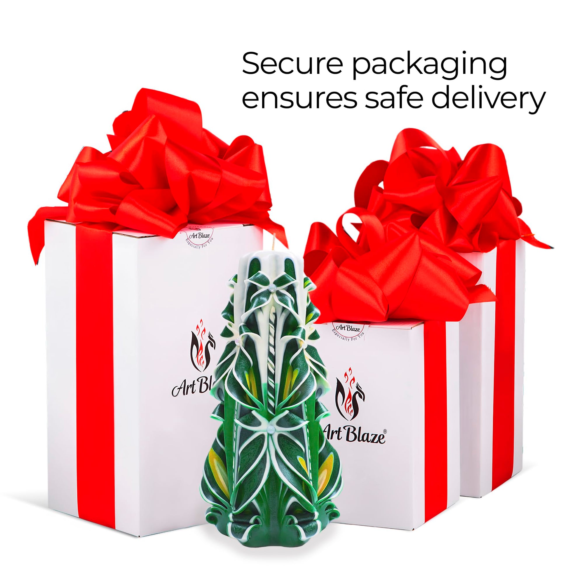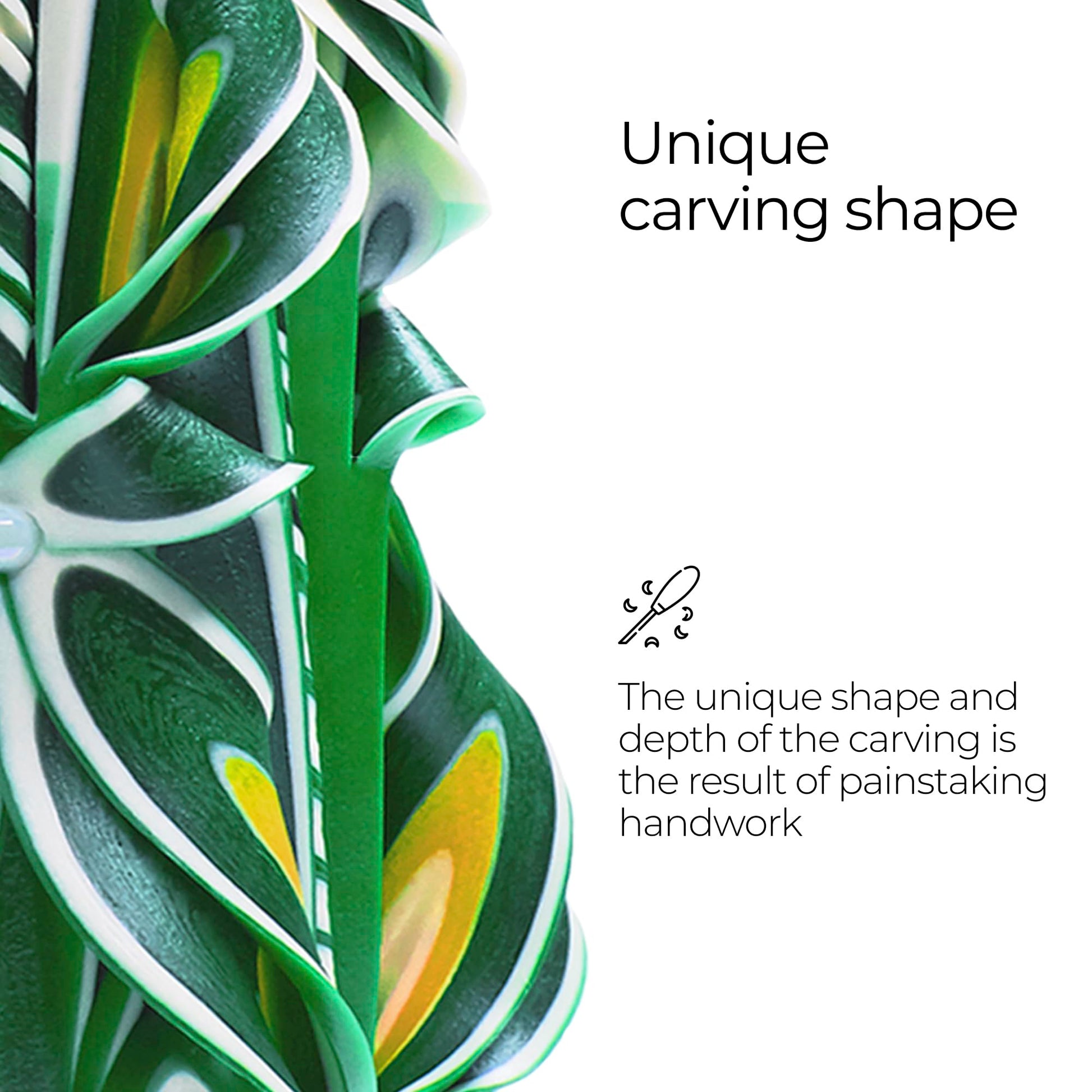 Carved Candles - Handmade Long Burning Decorative Luxury Candles - Unscented - Perfect for Home Decor, Birthdays, Romantic Occasions, Gifts for Women, Mother's Day Gift for Mom - Big Green