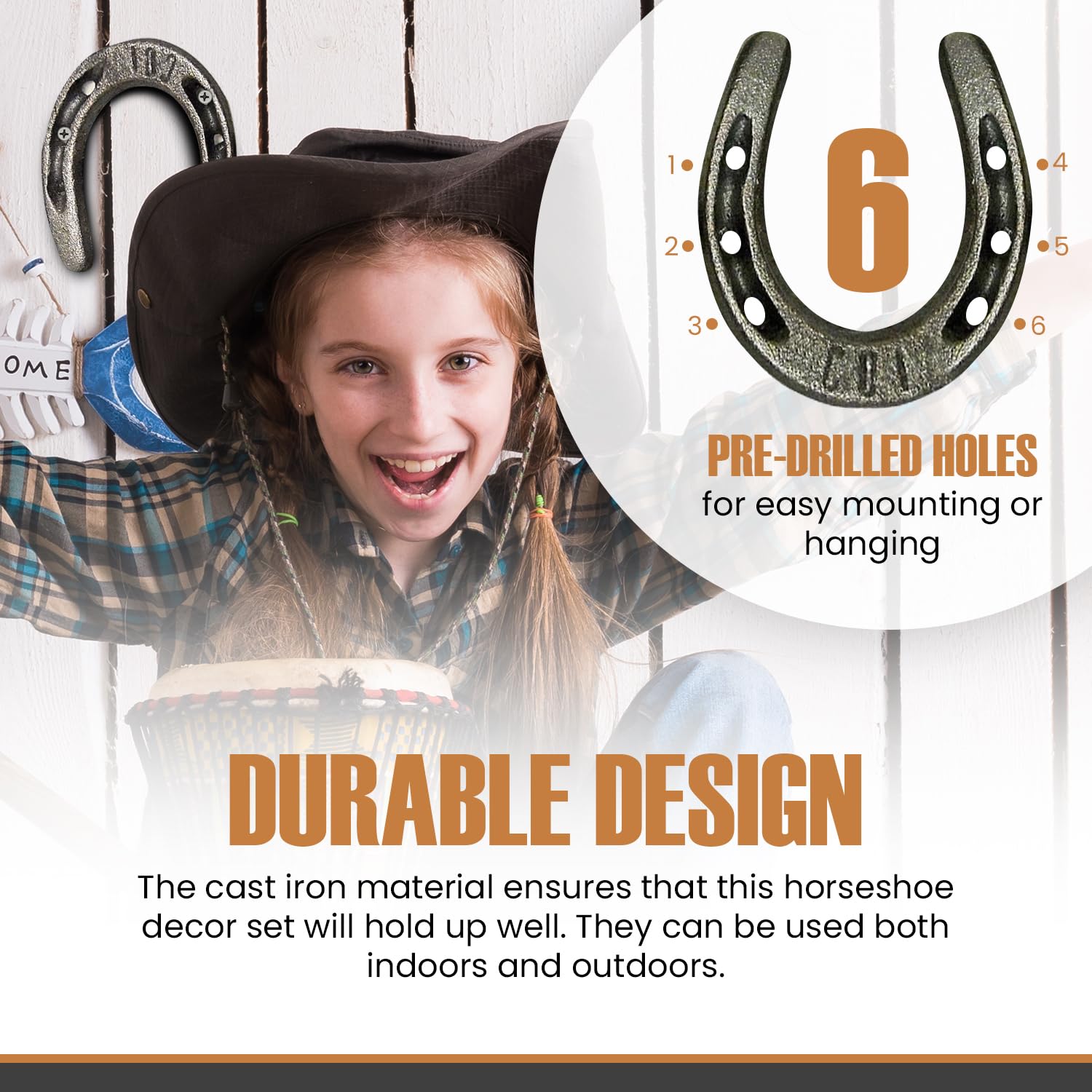• PRE-DRILLED FOR EASY HANGING & MOUNTING: Six pre-drilled holes on each mini horseshoe make mounting simple on wood, metal, or walls, no extra drilling required.