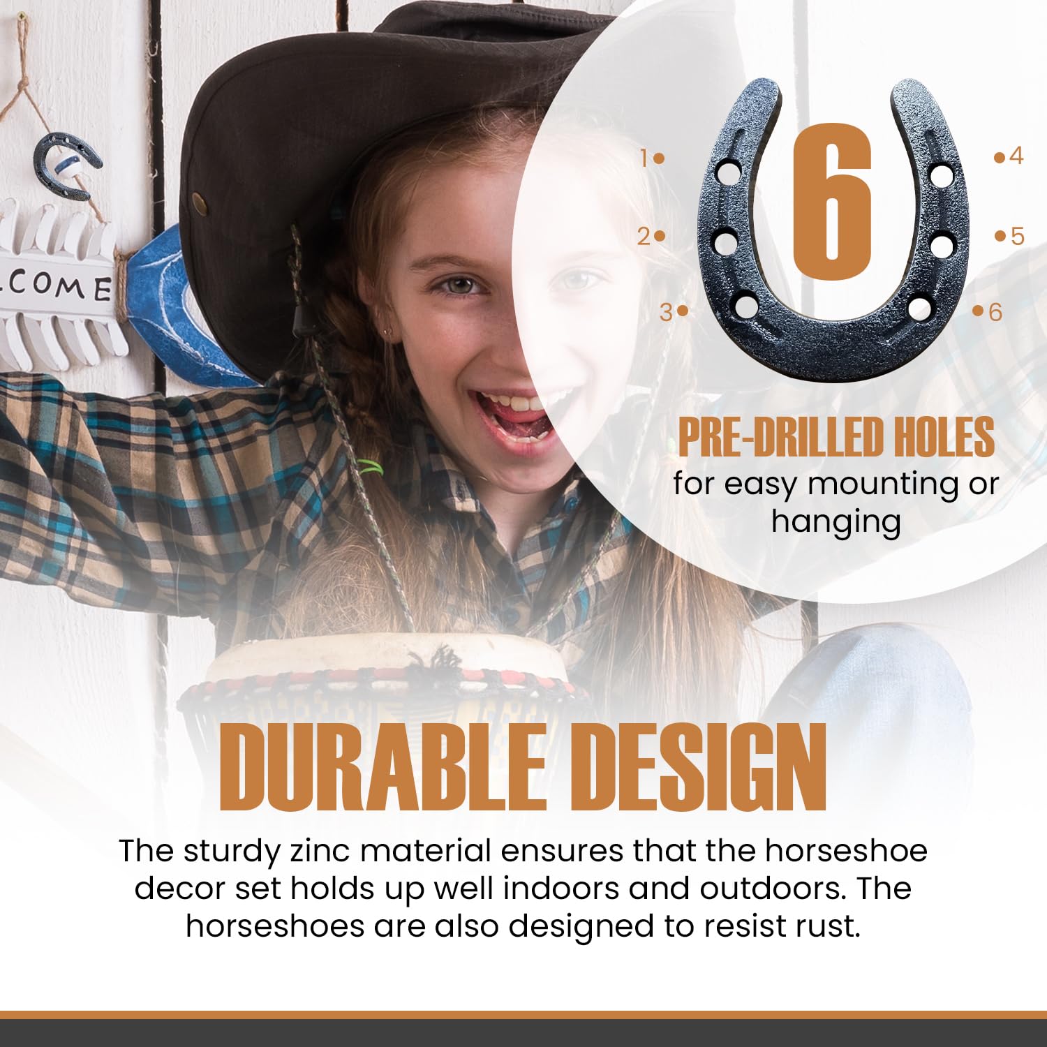 • DURABLE DESIGN: The sturdy zinc material ensures that the horseshoe decor set holds up well indoors and outdoors.
