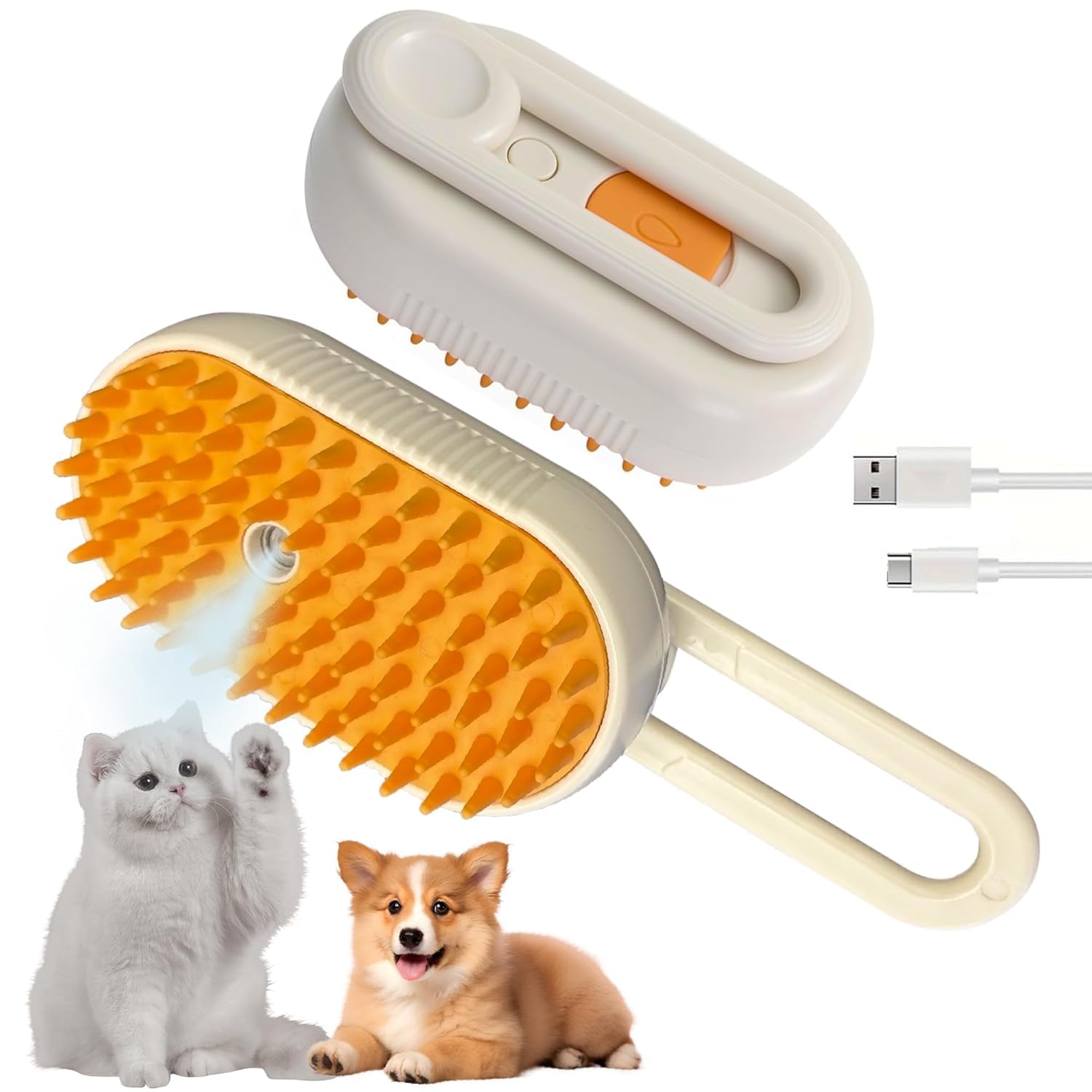 Cat Steam Brush for Shedding Dog Brush with Steam Pet Hair Cleaning Brush Comb for Spray 3 in 1 Pet Grooming for Long & Short Haired Pets – Spritz Defur Comb for cats(orange)