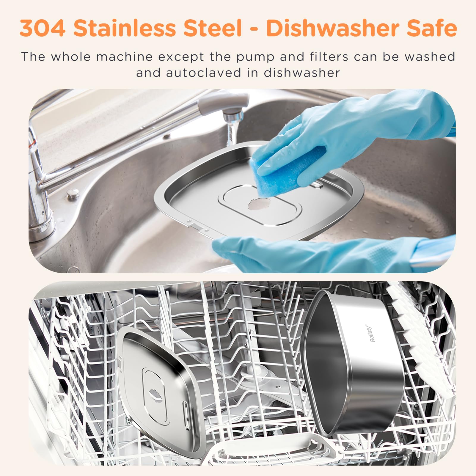 • 【304 Stainless Steel Material】Cat water fountain is made of 304 stainless steel, which is safer and more durable than plastic cat water dispensers. Pet fountain can be used for many years, and the stainless steel material makes it less likely to have any scratches or corrosion. Specially, it can withstand high temperature cleaning to ensure your pet's health.