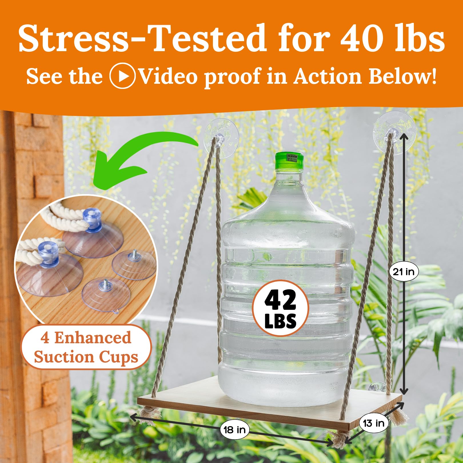 • Strong & Sturdy Frame: Built with a solid pine wood board and thick cotton ropes, and enhanced with 4 strong suction cups capable of supporting up to 40 lbs, our cat window seat guarantees durability and a security while your feline friend enjoys the view.