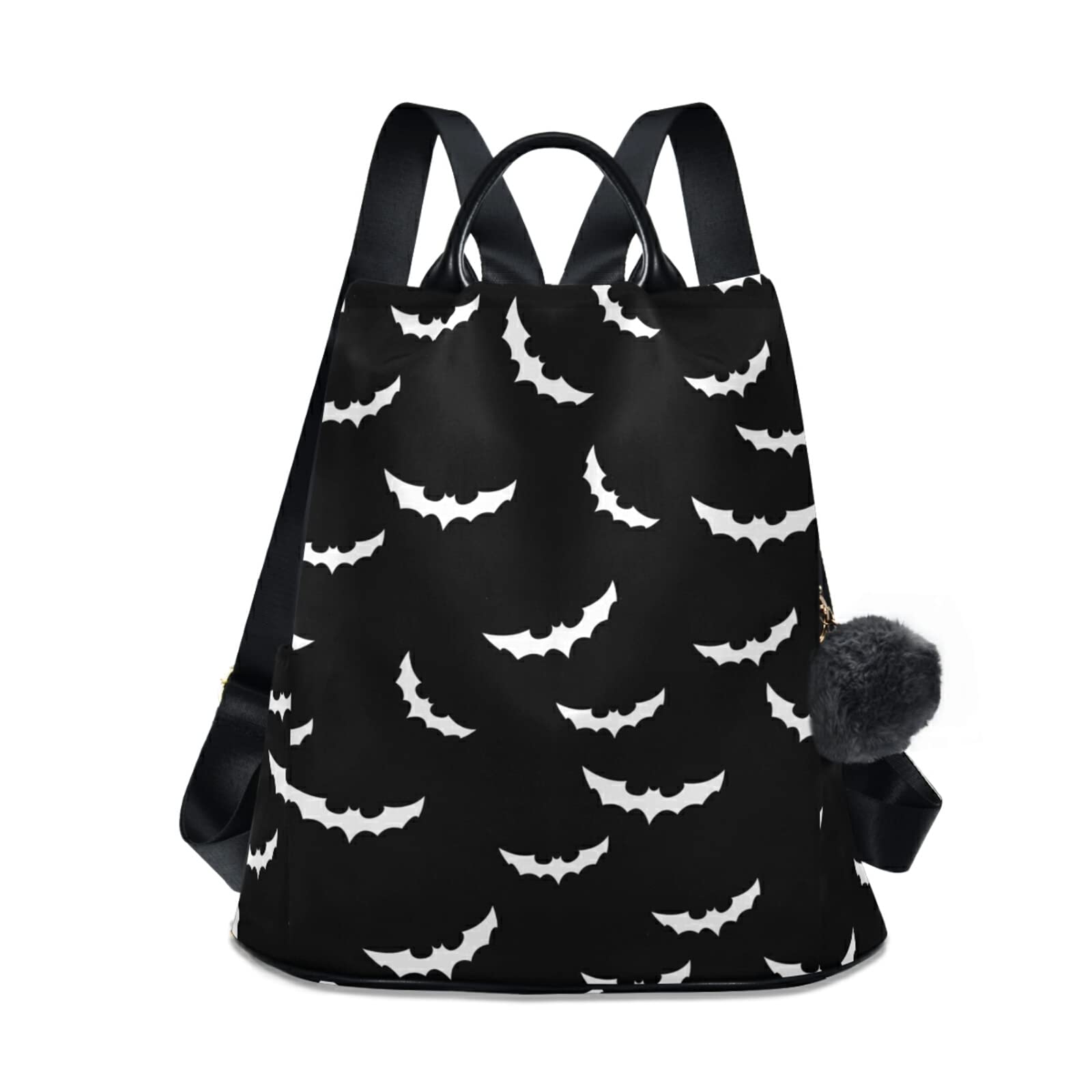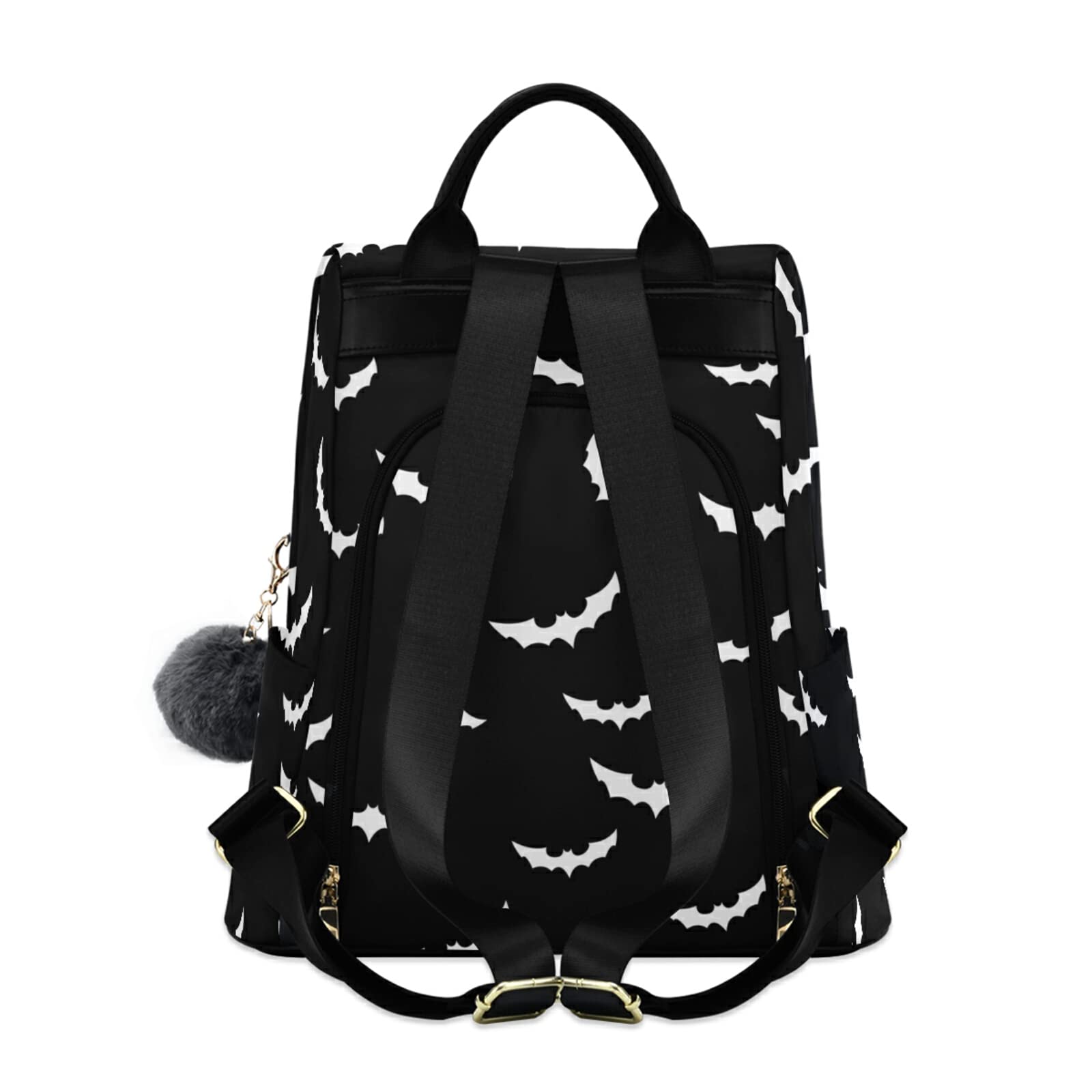 CBBYY Bats Halloween Backpack Purse for Women Nylon Anti-theft Travel Backpack Lightweight Shoulder Bag with Plush Ball Keychain