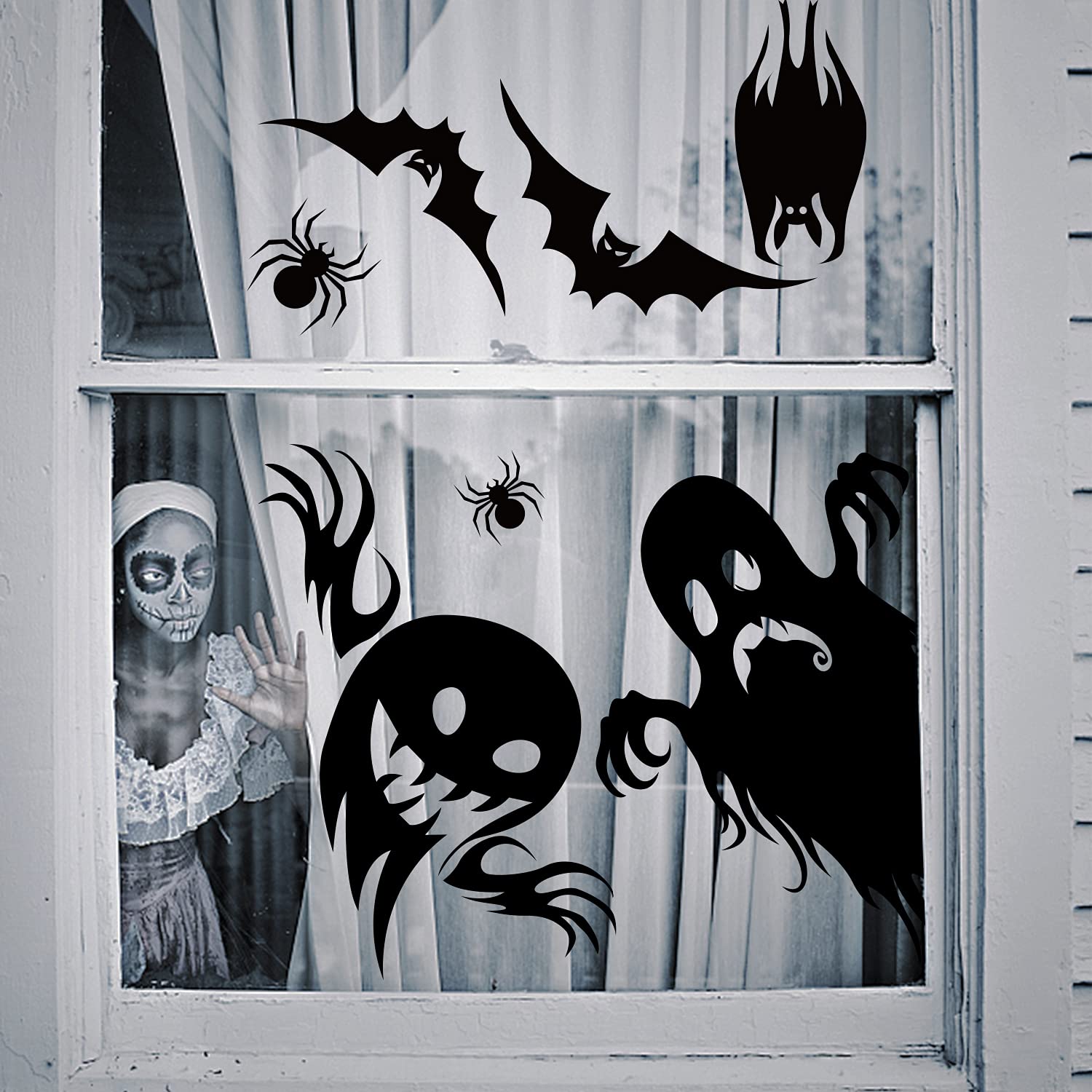 • SPOOKY HALLOWEEN SILHOUETTE:The halloween window stickers feature creepy ghost and monster in large size,comes with bats and spiders.Festive addition to your home decoration.