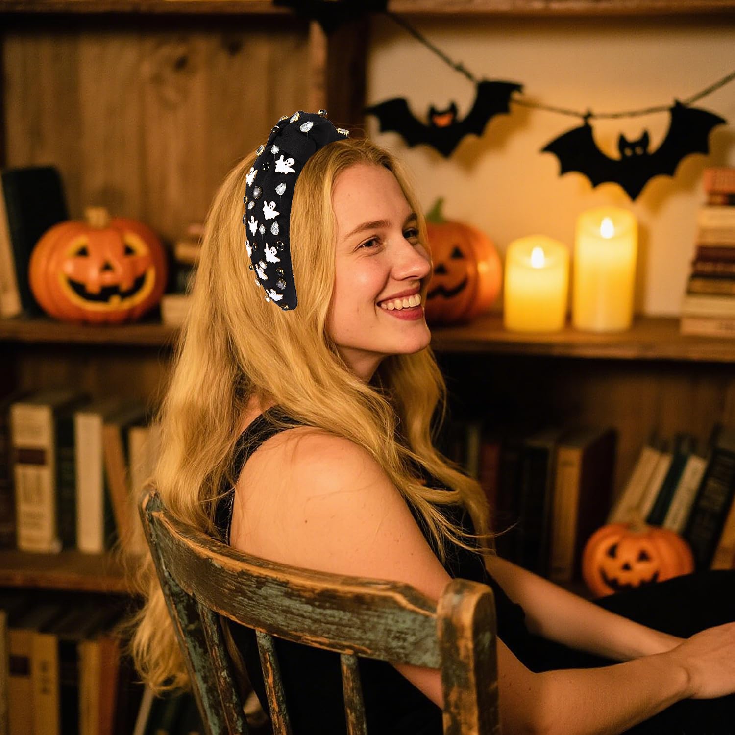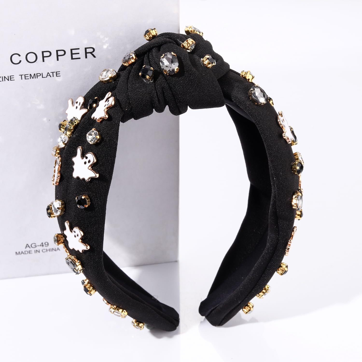 ♥ High Quality Material&Sizes -- Show the world your wicked side with this ghost headband. Made of high quality alloy and enamel, nickel free, lead free. Width: about 5.5inch. Lightweight and comfortable, designed to sit perfectly and not slide back off your head. These rhinestone pearl knotted headband looks great dressed up with a complete costume but they are just as stylish with a pair of jeans and casual t-shirt, instant costume! Show your temperament and add festival atmosphere!