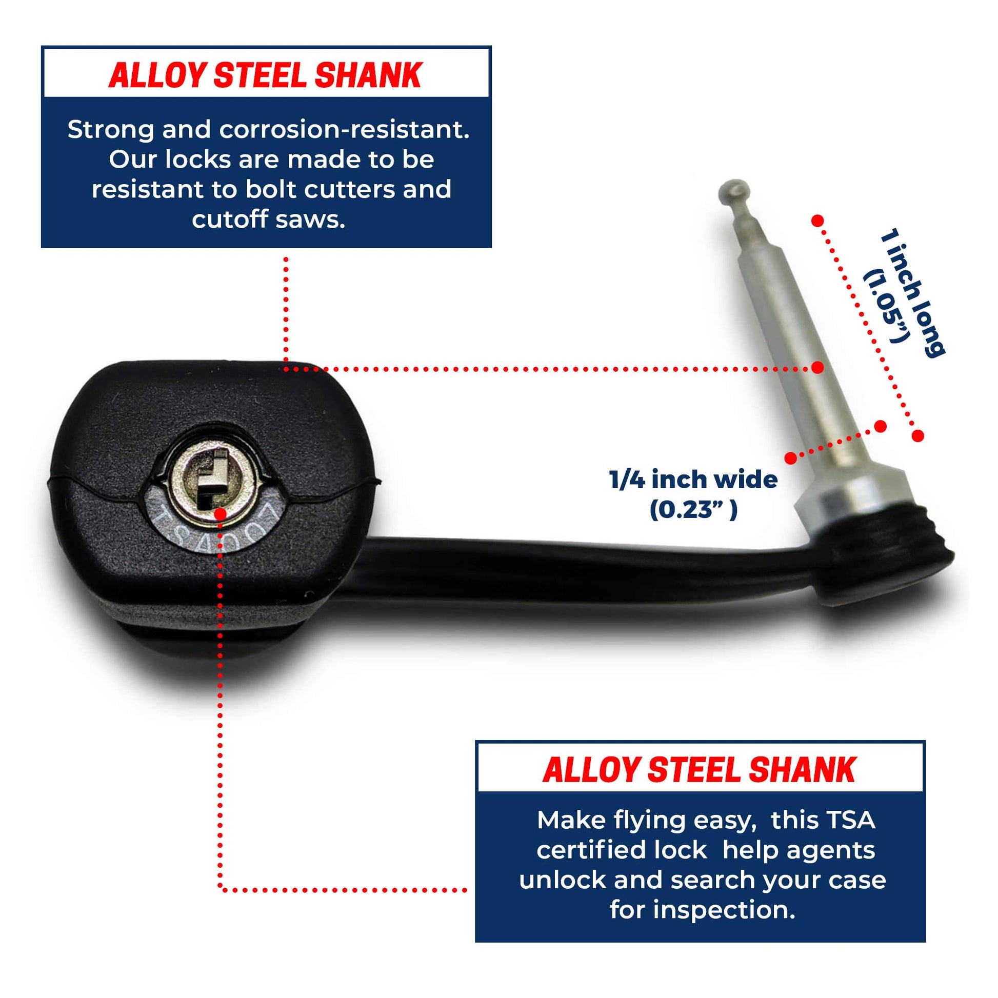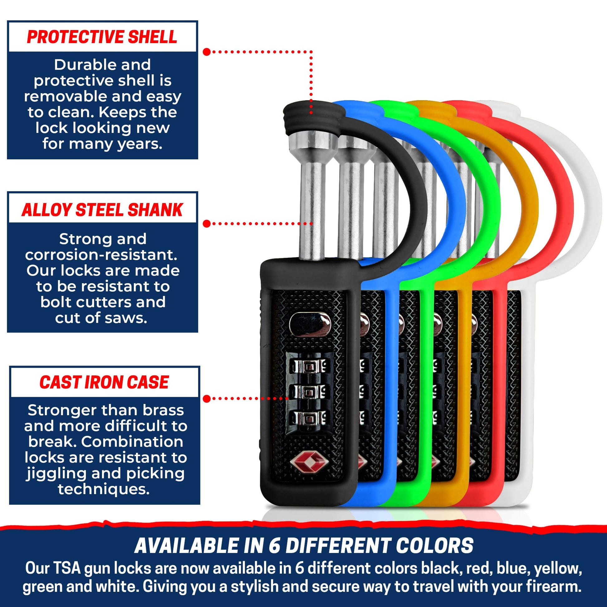 • CHILD-SAFE DESIGN: Keep your firearms out of the wrong hands. The secure, single-shaft design offers additional gun safety, making our TSA gun case locks perfect for homes with children. A smart choice for responsible gun owners prioritizing a safe and secure home environment.