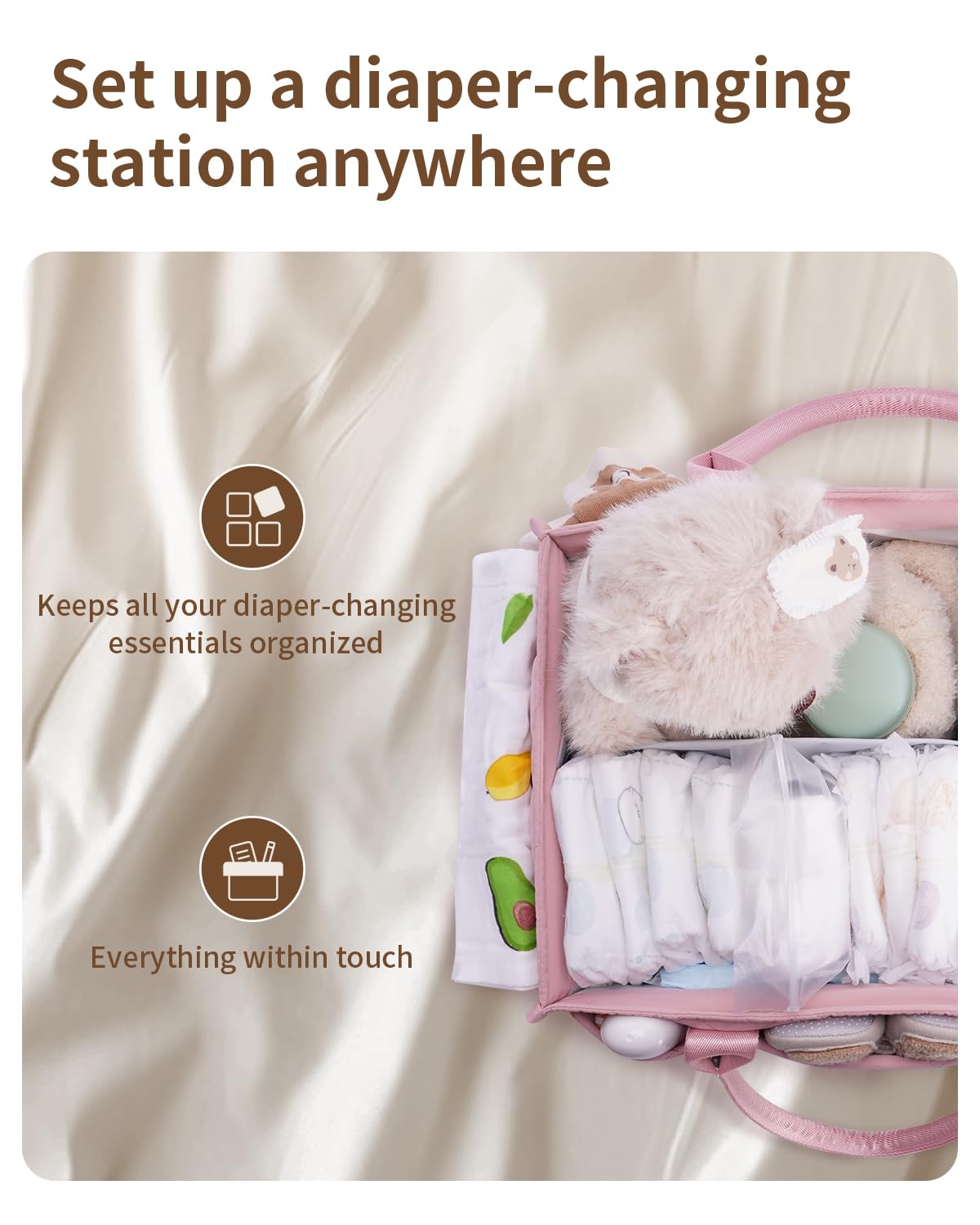 CEI-CEI Baby Diaper Caddy Organizer Large Nursery Storage Basket with Handles for Newborn Essentials, Portable Car Organizer for Diapers(Pink)