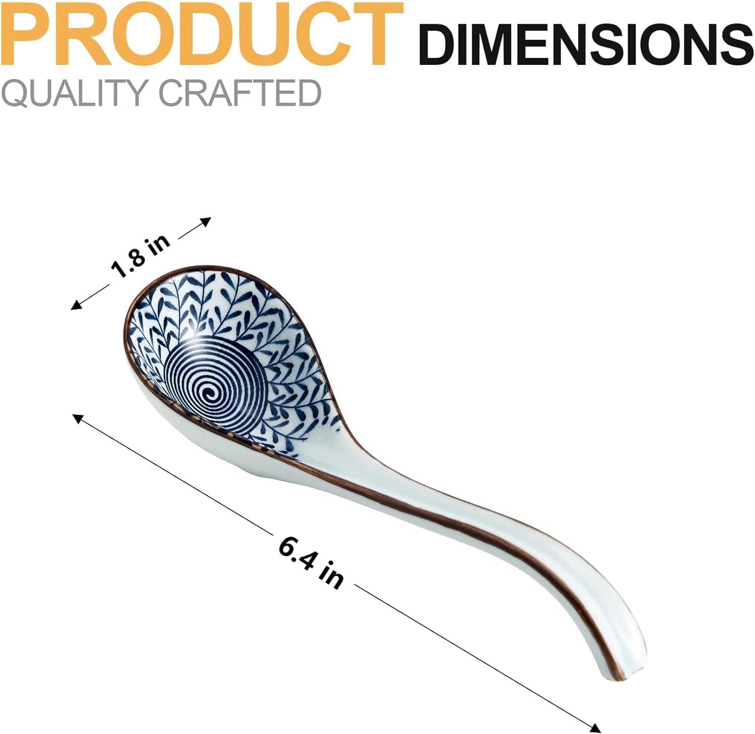 • 【Nice Pattern Design】6.4'L x 1.8'W. Asian Soup spoons with 4 unique and lovely patterns, which is perfectly integrate the blue and white porcelain, elegant and beautiful. Under glaze technology, just feels better than using plastic,Stainless Steel.