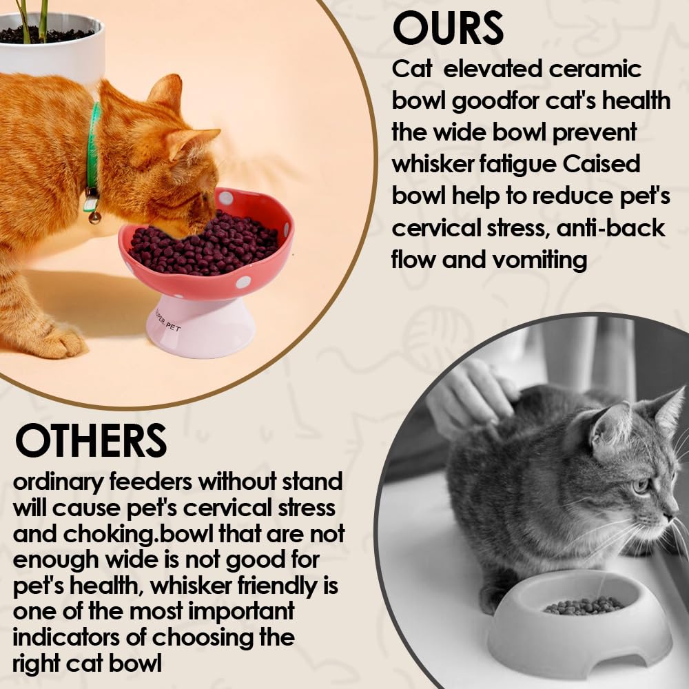 • Adorable Styling -- This cat bowls not only holds food and water, the mushroom-shaped appearance also makes dinning time more pleasure, and can be your home deco.